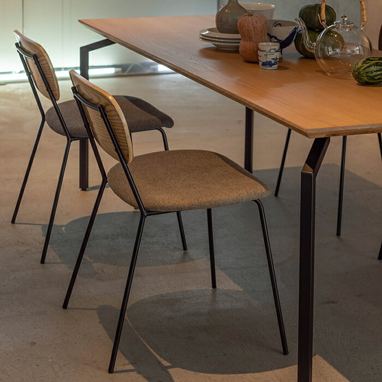 スペック:天然木化粧合板(アッシュ) ウレタン塗装 スチール(粉体塗装) ポリエステル