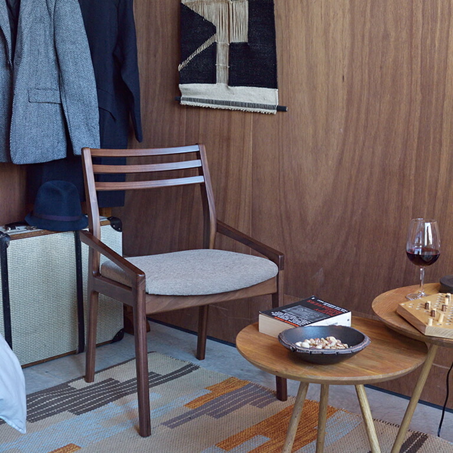 日本のものづくり力を感じる、美しいチェア。繊細で細いフレーム、細部までこだわった曲線で美しさを実現しました。緩やかなカーブが美しく座りやすく、実用性も兼ねています。