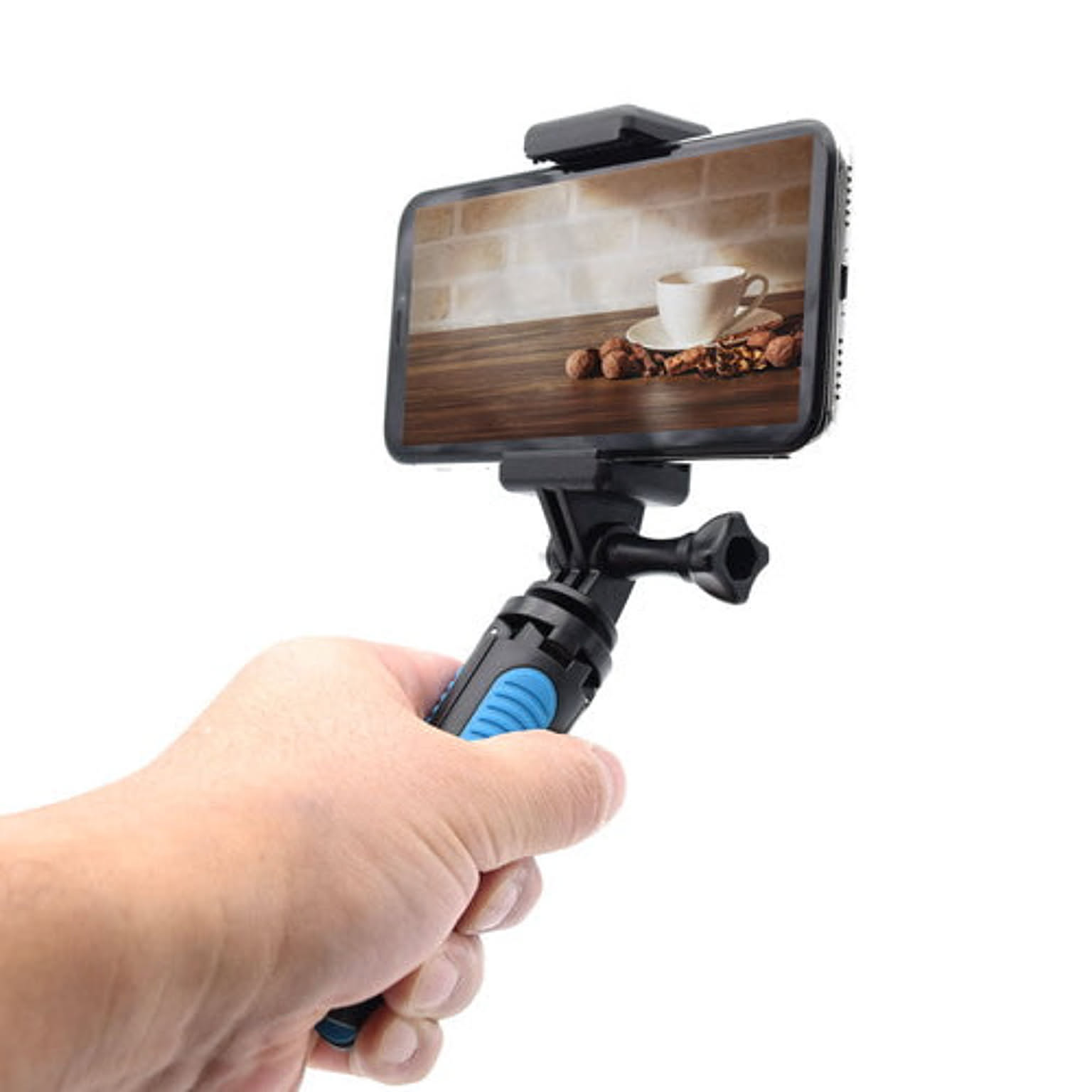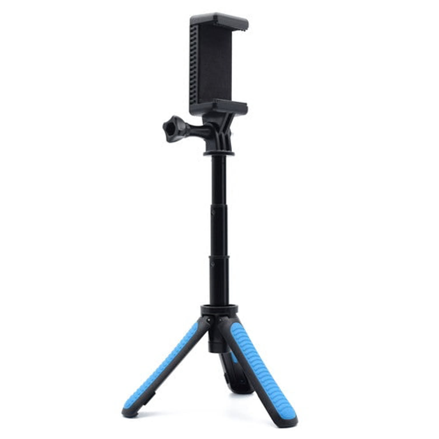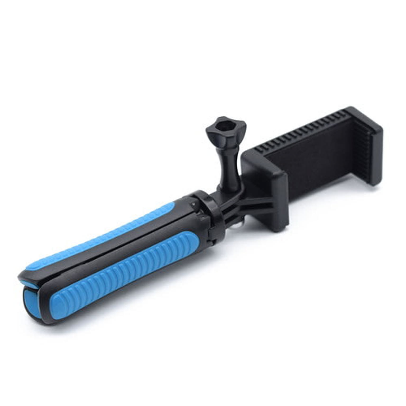 3分割されたグリップ部を展開すれば、コンパクトなスマホ三脚に早変わり。