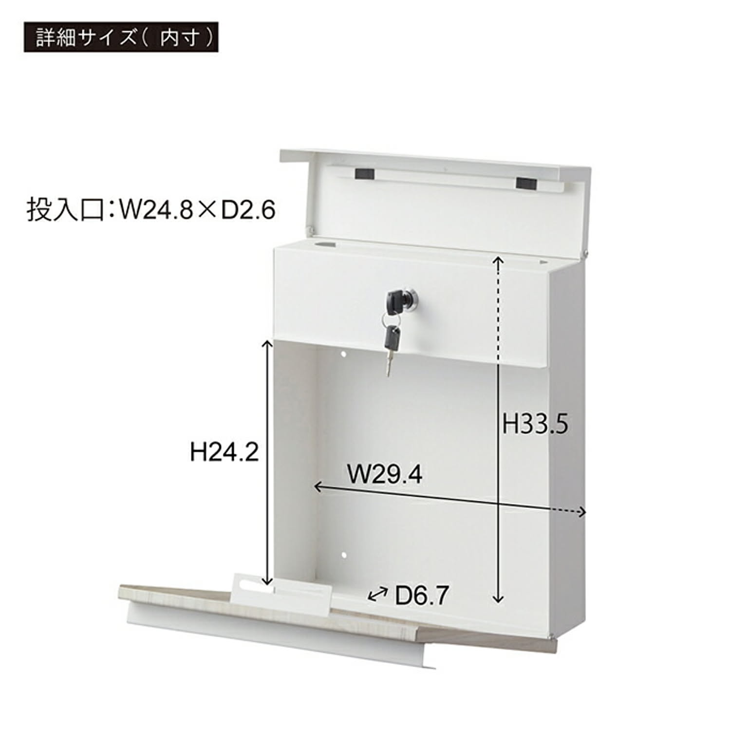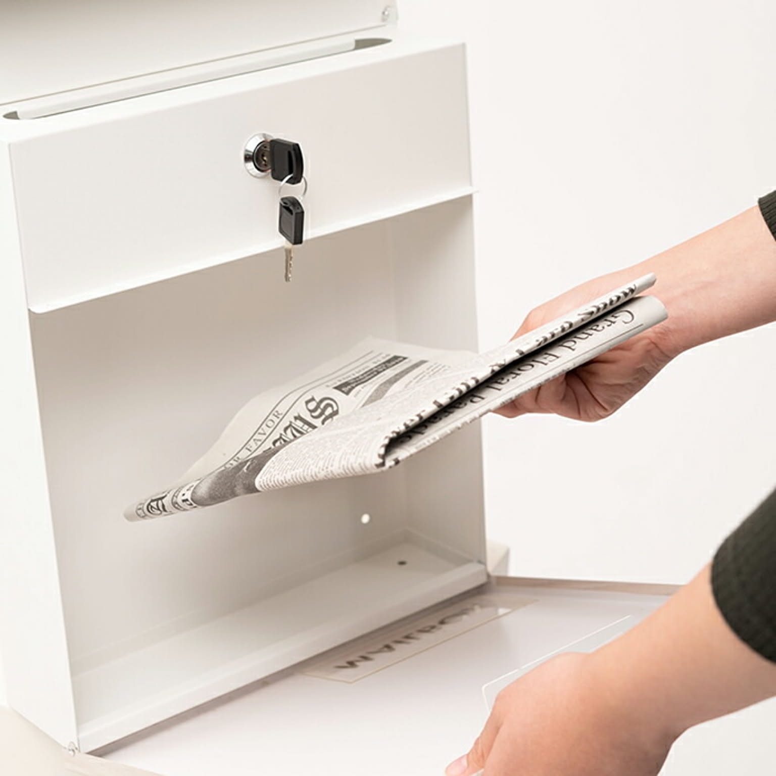 無駄をそぎ落としたシンプルデザインのメールボックス。鍵穴も目立たないようにした構造となっておりスタイリッシュに仕上がっております。本体のMAILBOXの文字は窓型になっており、中の郵便物をわざわざ開けずに確認ができます。