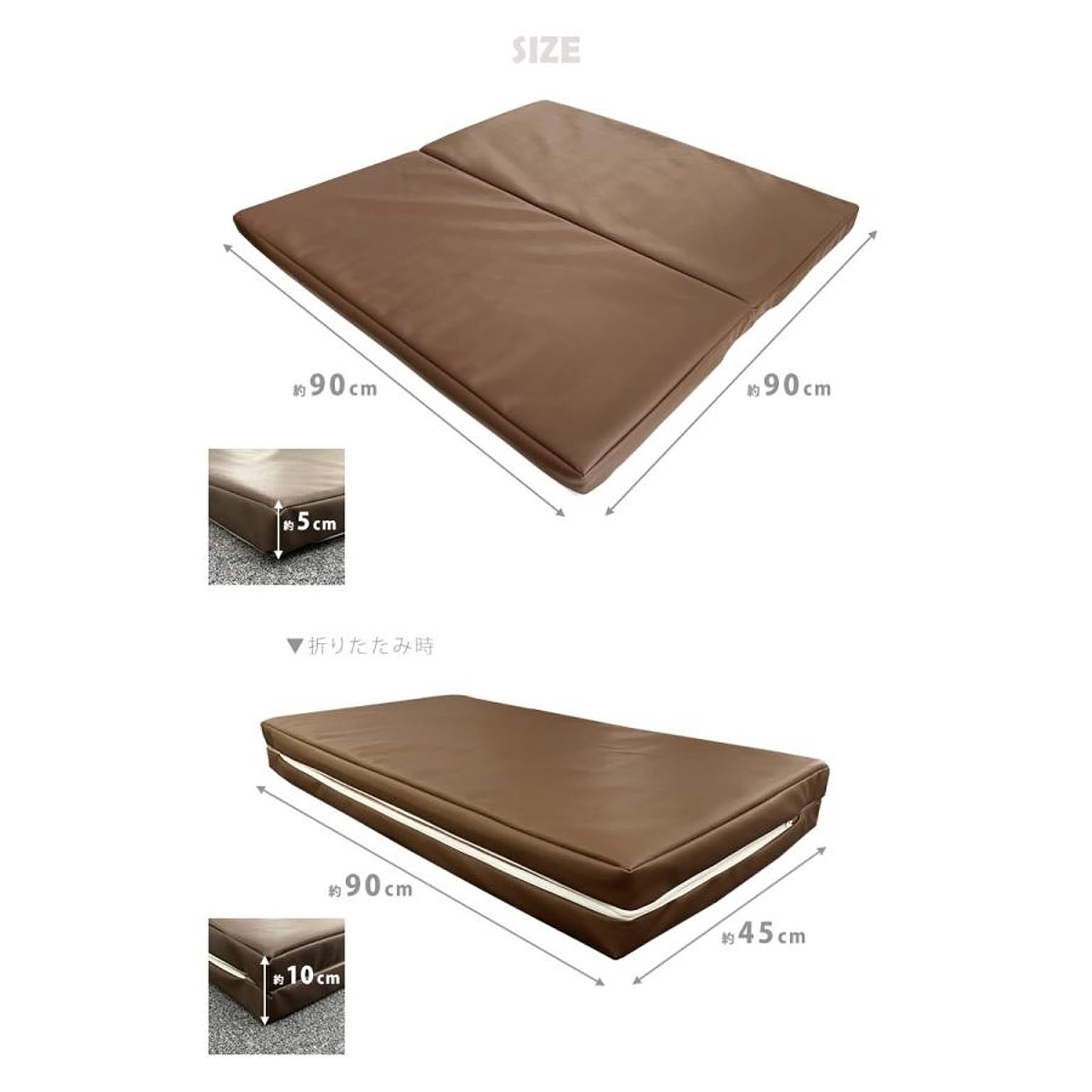マットサイズ:約90×90×厚み5cm(2つ折りタイプ)