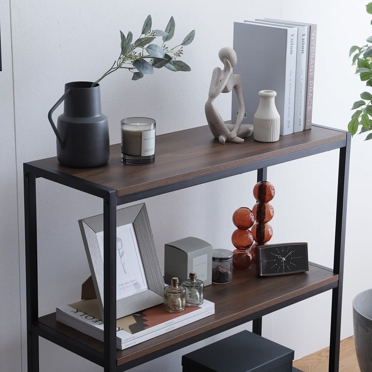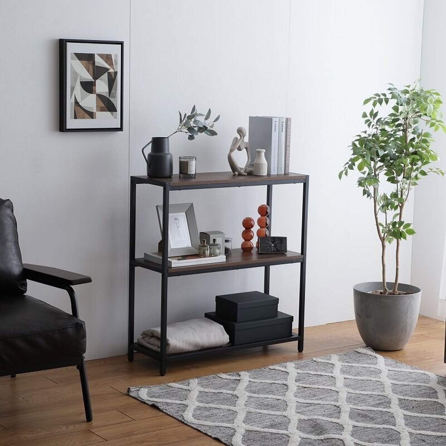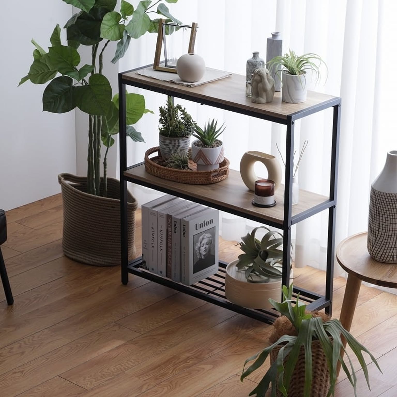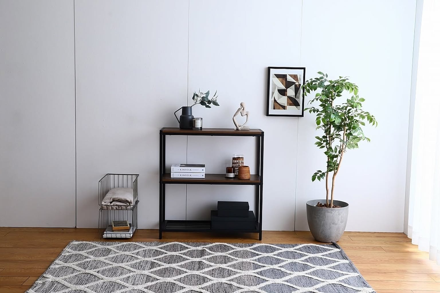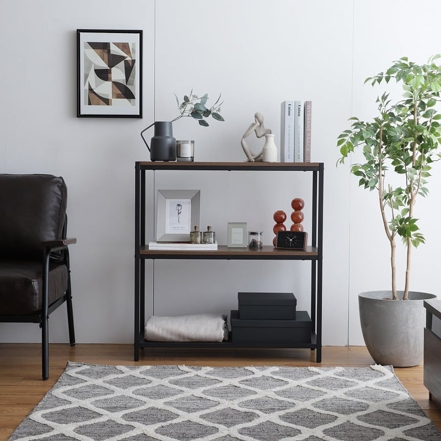 仕切りが無いオープンタイプのため、配置や方向を気にせず自由に収納できるのが特徴です。また、棚同士の間隔が34.5cmと36cmあるので、雑誌やカゴなどの高さのある物も収納が可能。まるでカフェや雑貨店のディスプレイのような『見せる収納』を楽しむことができます。