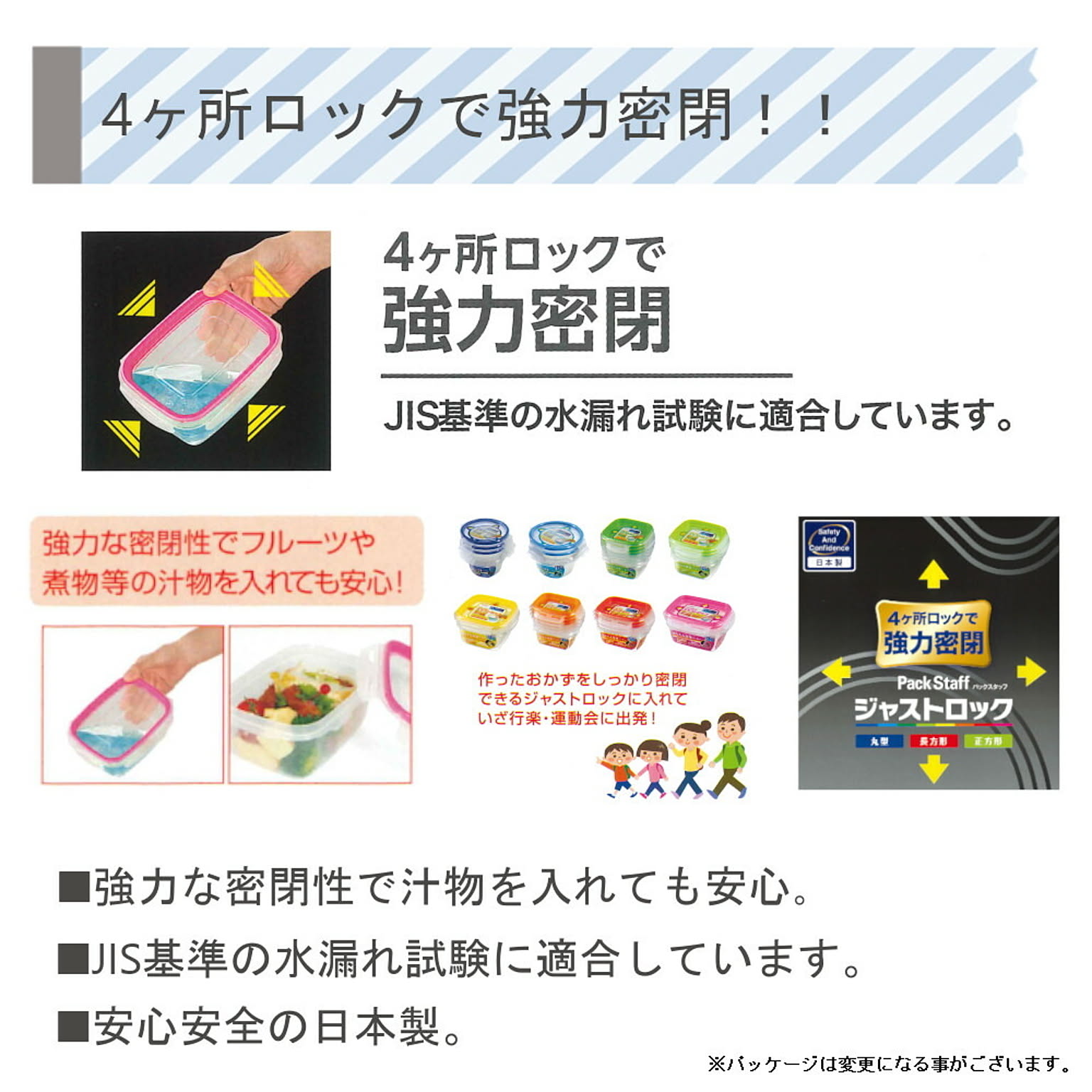 4ヶ所ロックで強力密閉!汁物が漏れない保存容器! フタをずらして電子レンジOK!食洗器も使えます。 パッキンとフタが一体のシームレス構造だから、パッキンを取り外して洗う手間がありません。 すき間に汚れもたまりません。