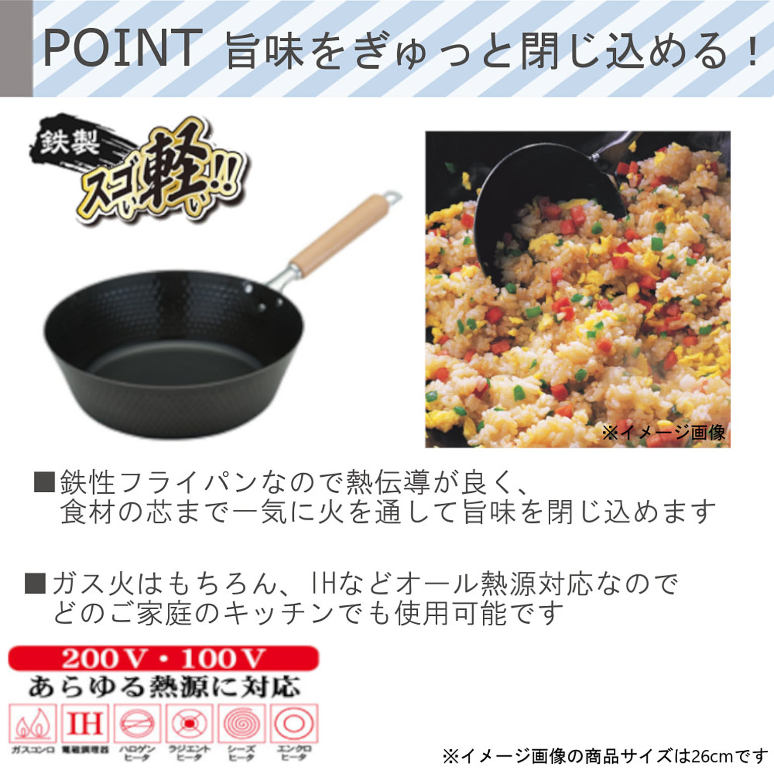 ●鍋振りが楽にでき、美味しい炒め物ができる鉄製フライパンです。