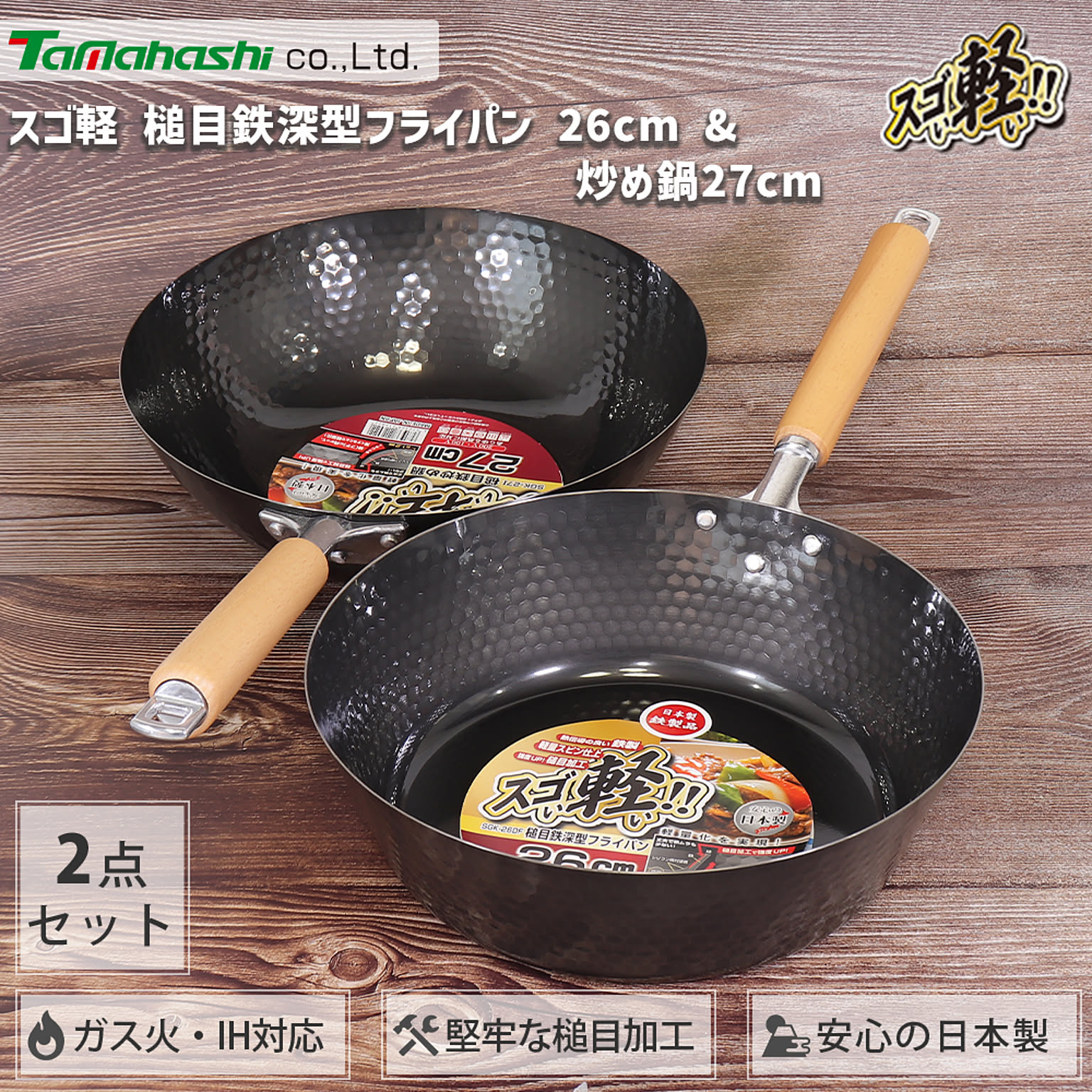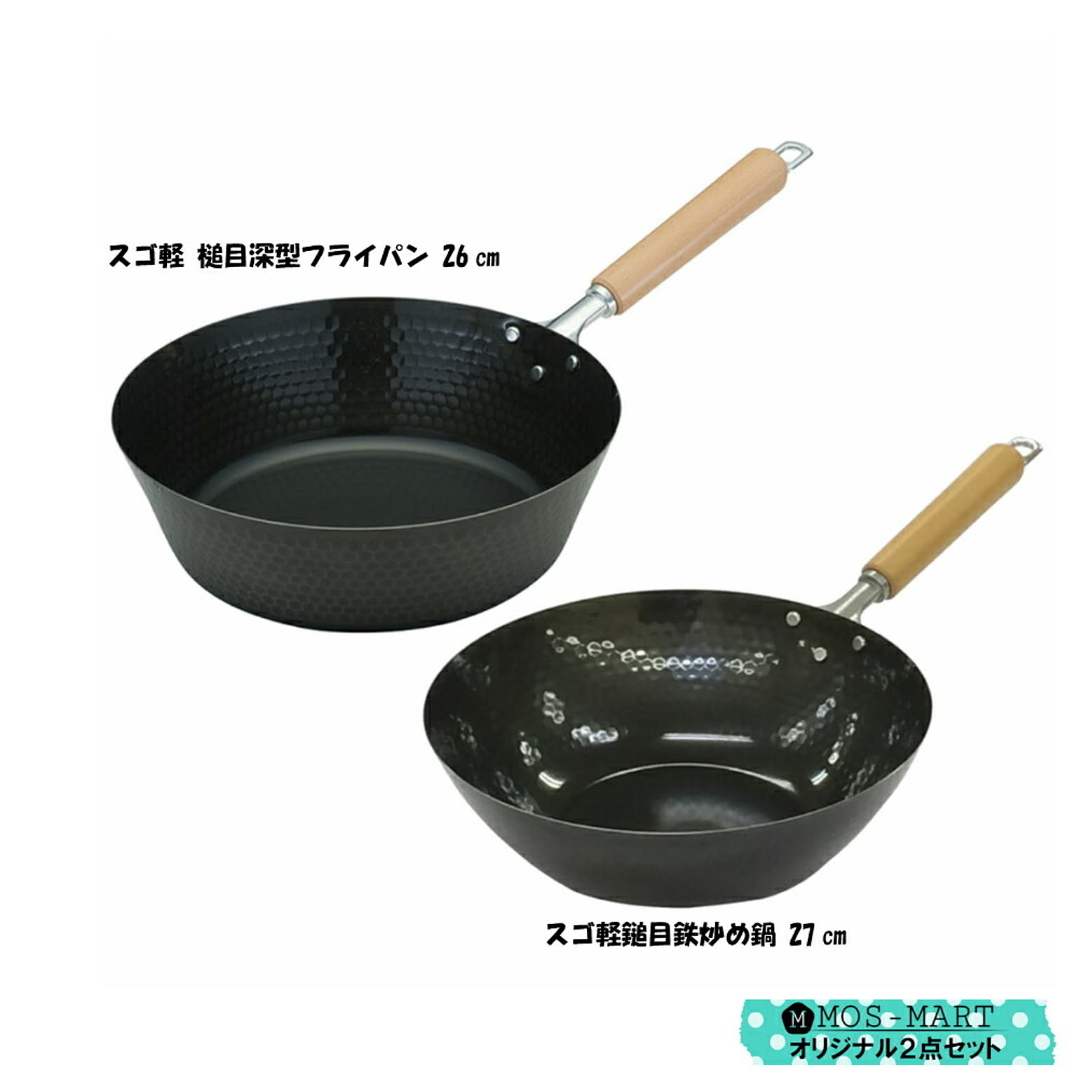 | セット内容 | 【スゴ軽 槌目深型フライパン 26cm】×1点、【SGK-27I スゴ軽鎚目鉄炒め鍋 27cm】×1点、計2点セット |