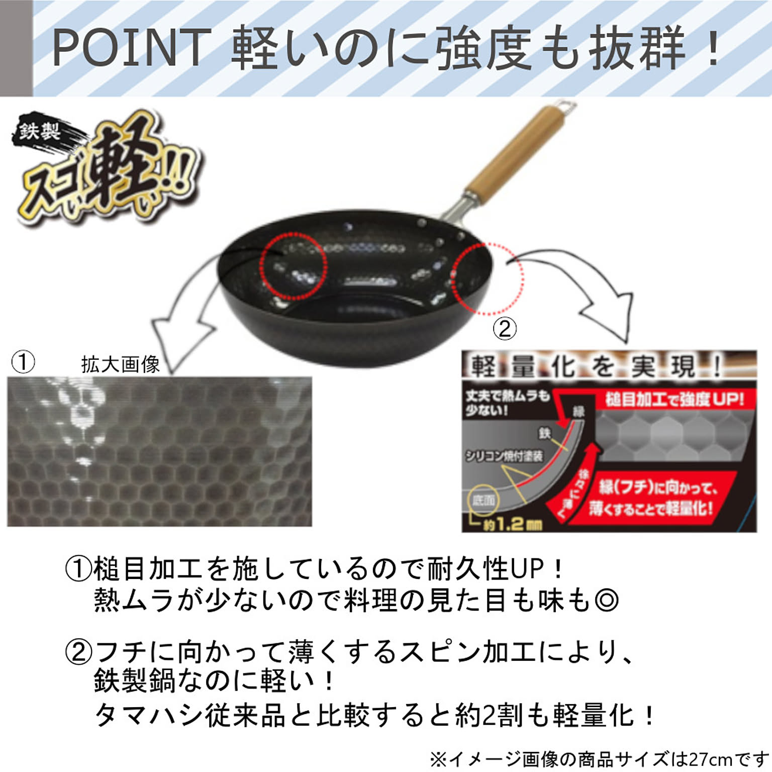 【SGK-27I スゴ軽鎚目鉄炒め鍋 27cm】