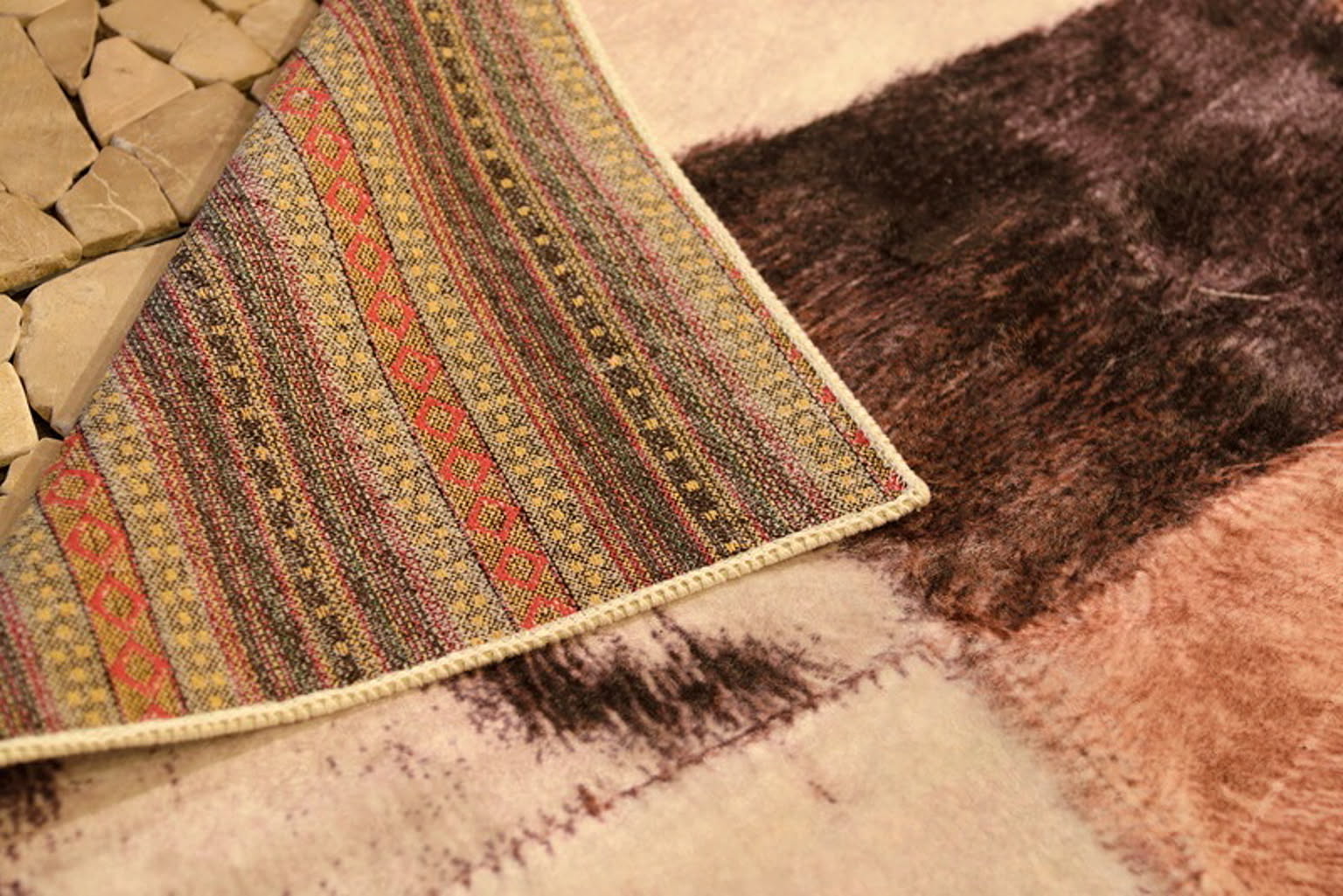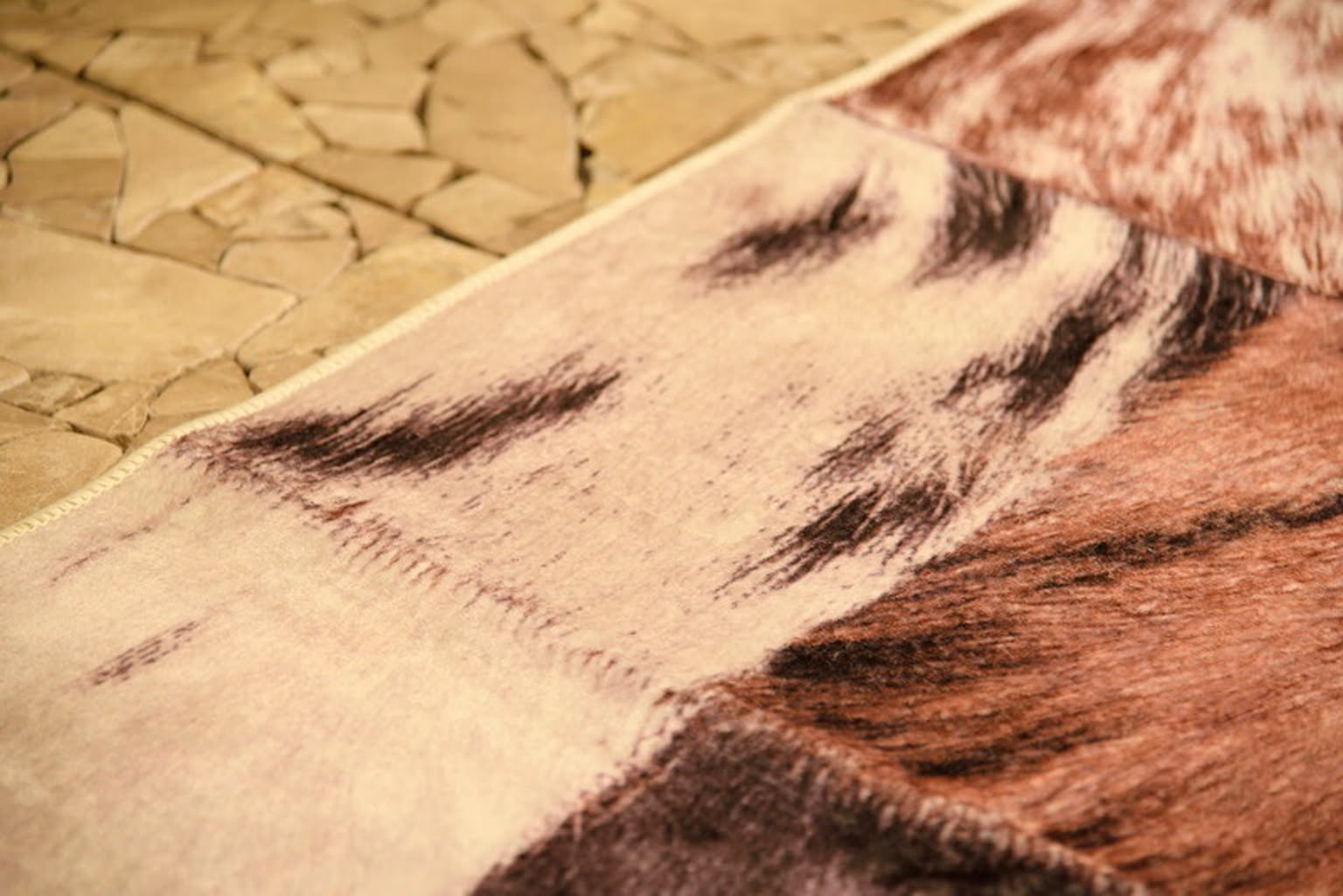 ラグジュアリーなハラコパッチワークを表現 まるで本物のように見えるプリントとさわり心地を表現したデザインラグです。4サイズの展開をしておりますのでいろいろなシーンに合わせてお選び下さい。