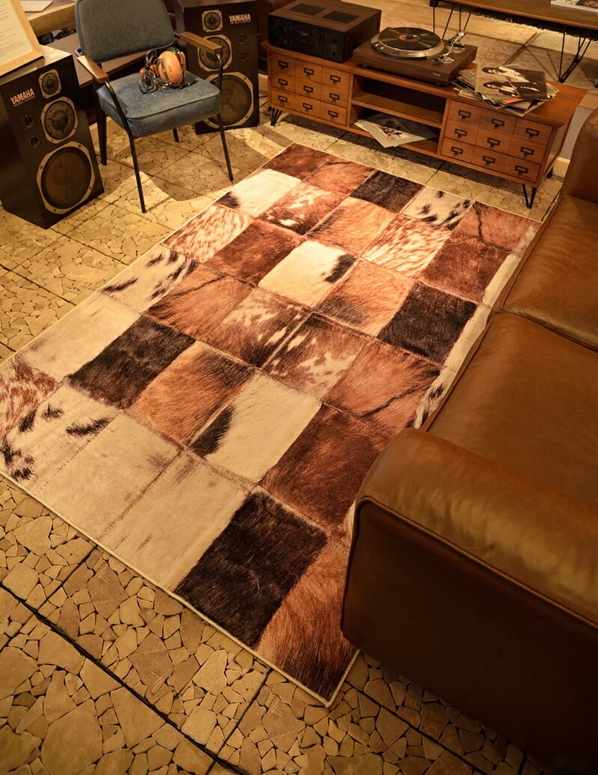 ラグジュアリーなハラコパッチワークを表現 まるで本物のように見えるプリントとさわり心地を表現したデザインラグです。4サイズの展開をしておりますのでいろいろなシーンに合わせてお選び下さい。