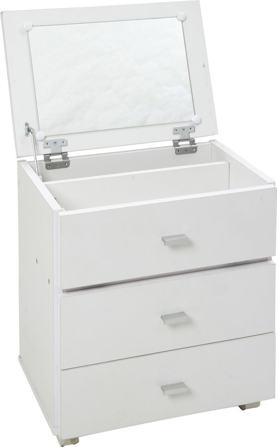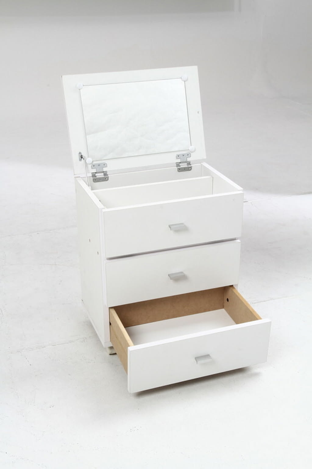 お問い合せ番号aafb47808商品名フィーゴ ドレッサー(WH) FW−4553DRサイズ全体サイズ:幅45×奥行31×高さ53cm引出内寸(上段):380x155x115mm引出内寸(下段):380x235x115mmカラー/タイプ扉式材質■表面材:プリント紙化粧繊維板 ■鏡部分:ガラスプリント紙化粧繊維板生産国香港商品形態組立品備考■キャスター:4個(内2個はストッパー付き)■奥のスペースは高さのかさばる小物でも収納できます。■フラップ扉を手前に倒すと簡易作業台になります。■キャスター付きで、内2個はストッパー付きなので、移動にも作業にも便利です。掲載商品の色・風合いは、実物と若干異なることがあります。さらに天然素材を使用して生産された商品については、個々の商品において寸法・色・風合いが若干異なる事がありますので予めご了承下さい。扉式開閉式