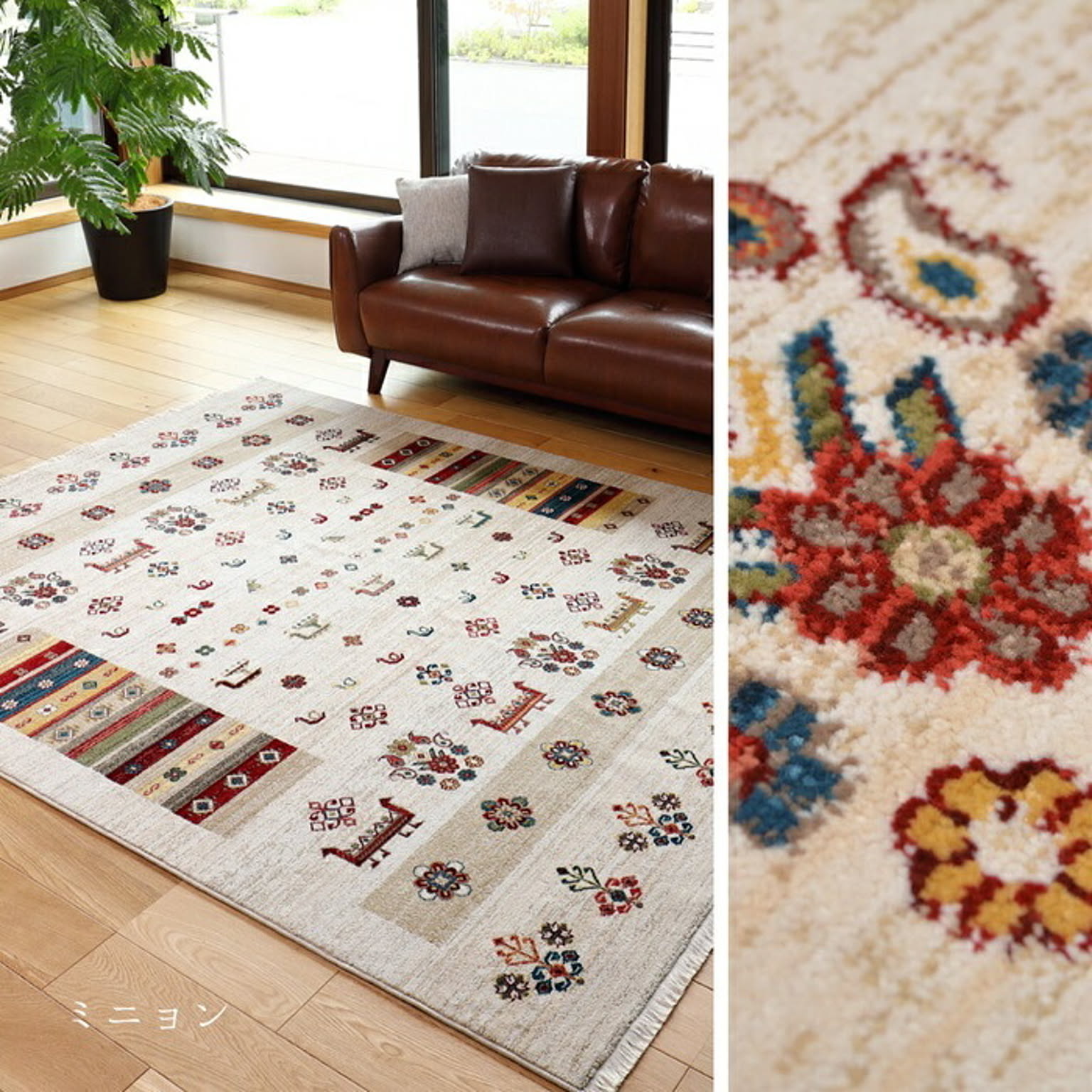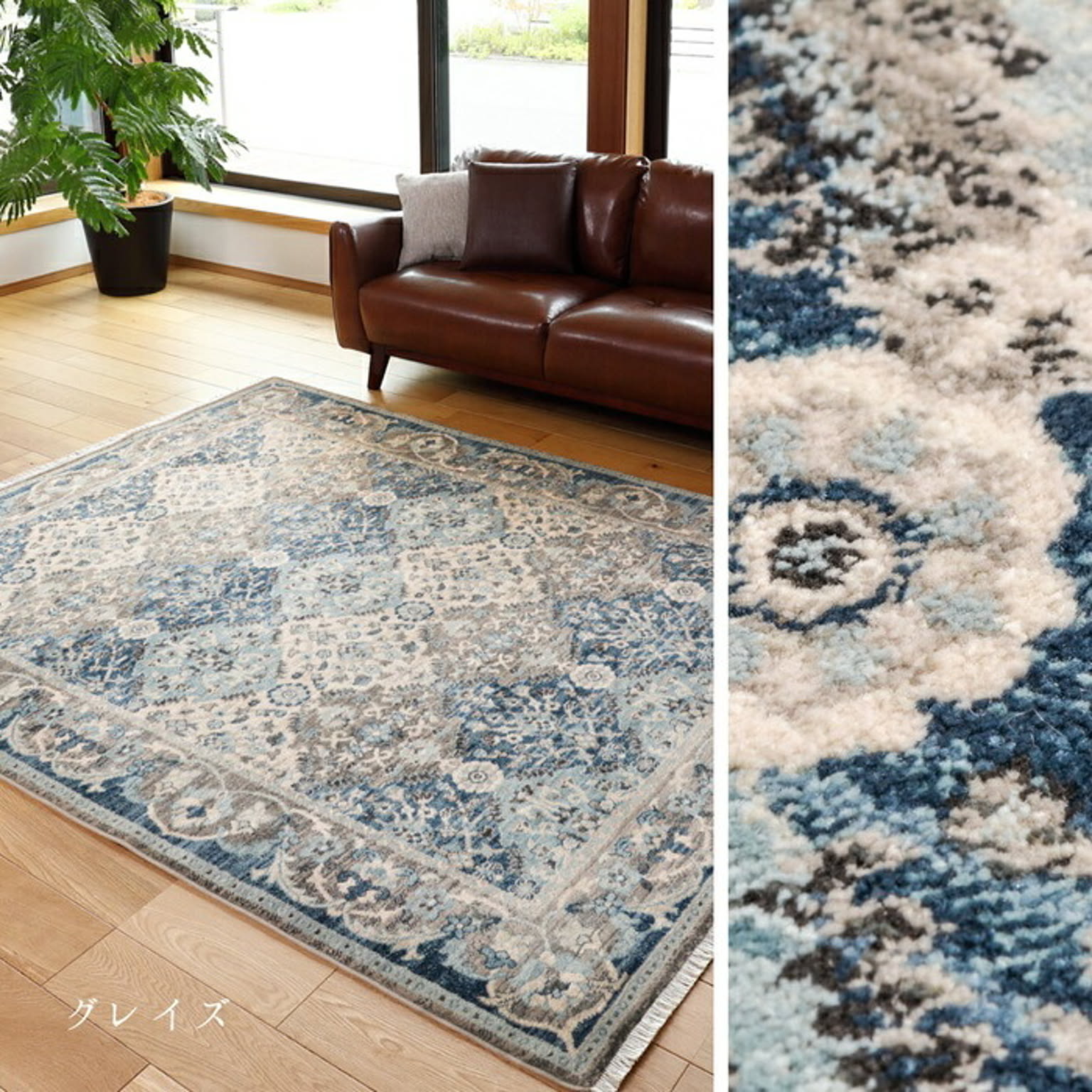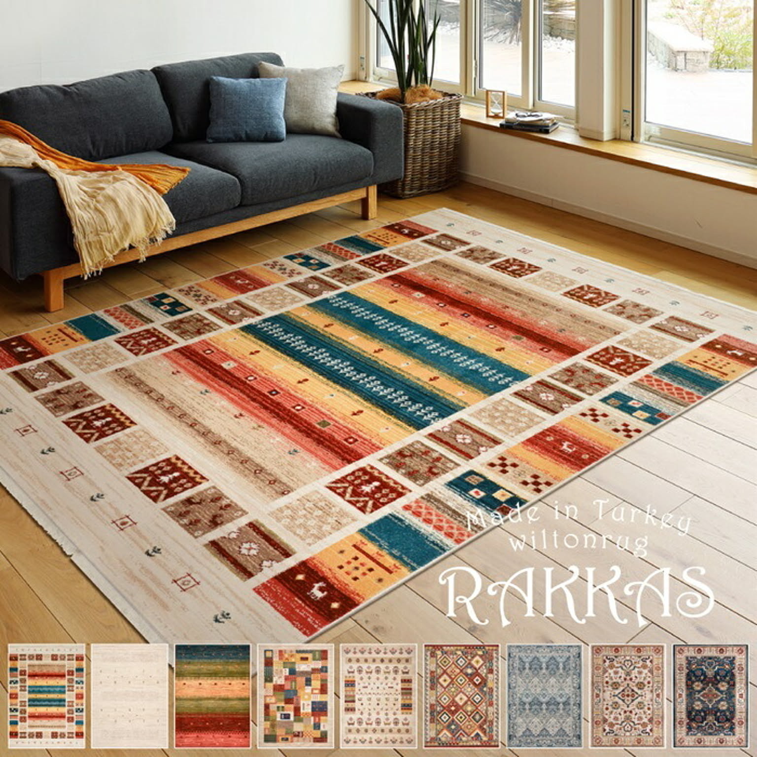 エスニックデザインのトルコ製 畳めるウィルトンラグ RAKKAS 160×225 グレイズ