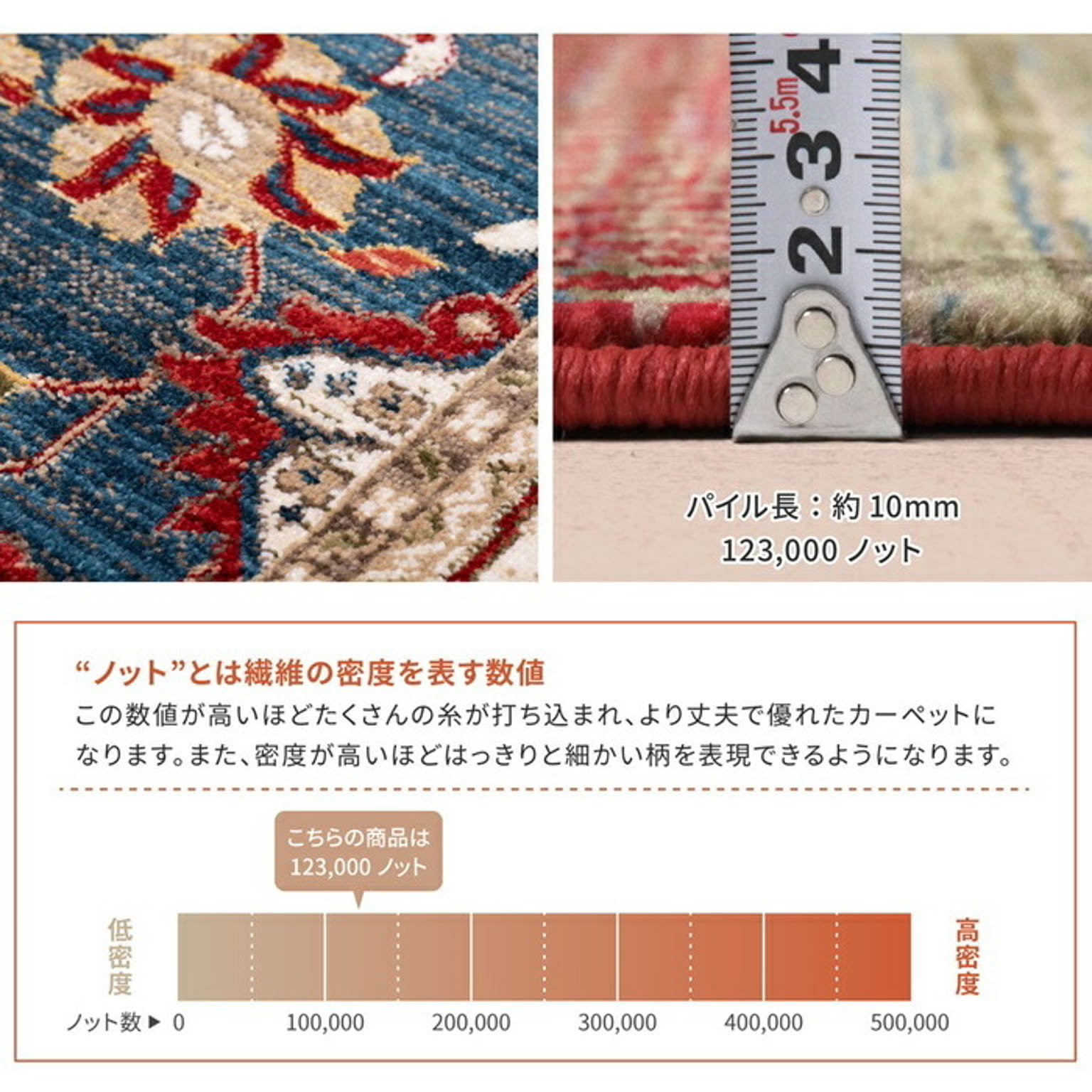 表面:ポリプロピレン100% パイル長:約10mm・123,000ノット ヒ−トセット加工