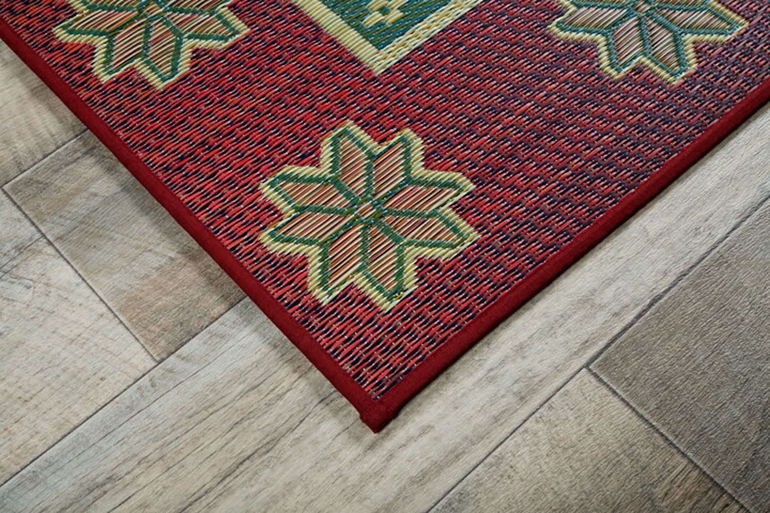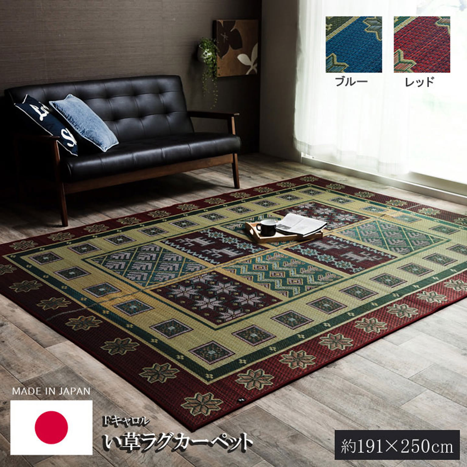 純国産 い草ラグカーペット 格子柄 『Fキャロル』 レッド 約191×250cm
