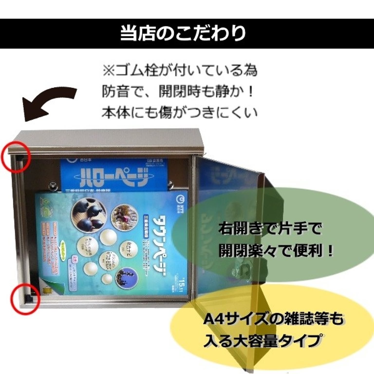◇家の「顔」となるエントランス★お洒落な郵便ポスト◇北欧モダンデザイン人気ポスト★スタンドタイプ大容量♪【サイズ】(ポスト最大部)巾350x高さ330x奥行110mm(スタンド)巾500x高さ1200mm【付属品】高級キーホルダー1個、カギ2本、アンカープラグ4本、ネジ4本、ゴム栓4個、スタンドセット1式【重量】1セット約6kg【素材】オールステンレス【仕上げ】白色(スタンドカラー)シルバー【仕様】スタンドタイプ、A4サイズ、上いれ、前だし、大容量♪【ご注意】鍵が共通しないので、紛失しないでください♪この郵便ポストには別売りの壁掛けタイプ(m044)もご用意♪郵便ポストの形状、カラーリング、素材の表現する味わいそして、スタイリング全体が生み出すイメージ個性的な存在感を放ち、印象的なエントランスのポイント!