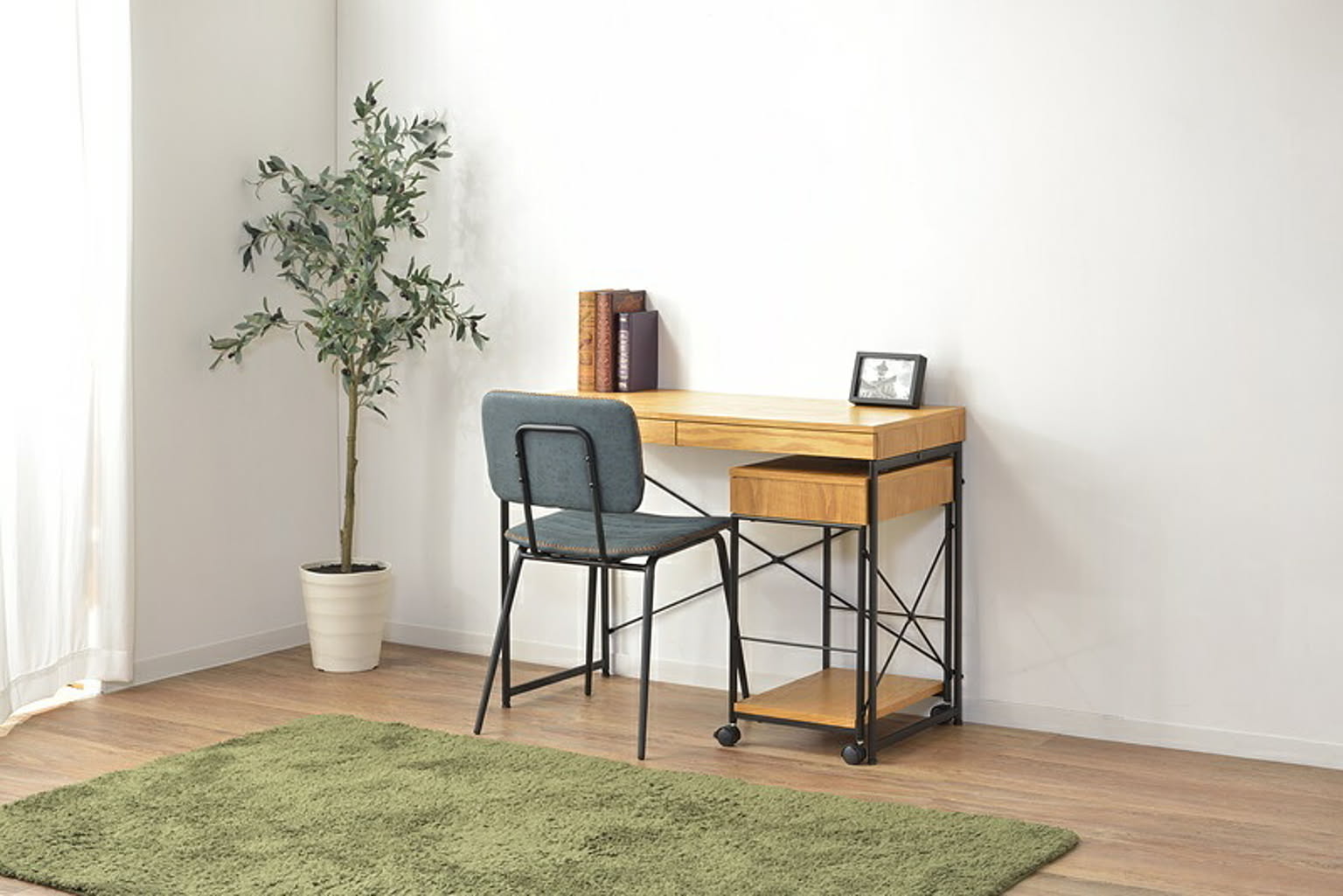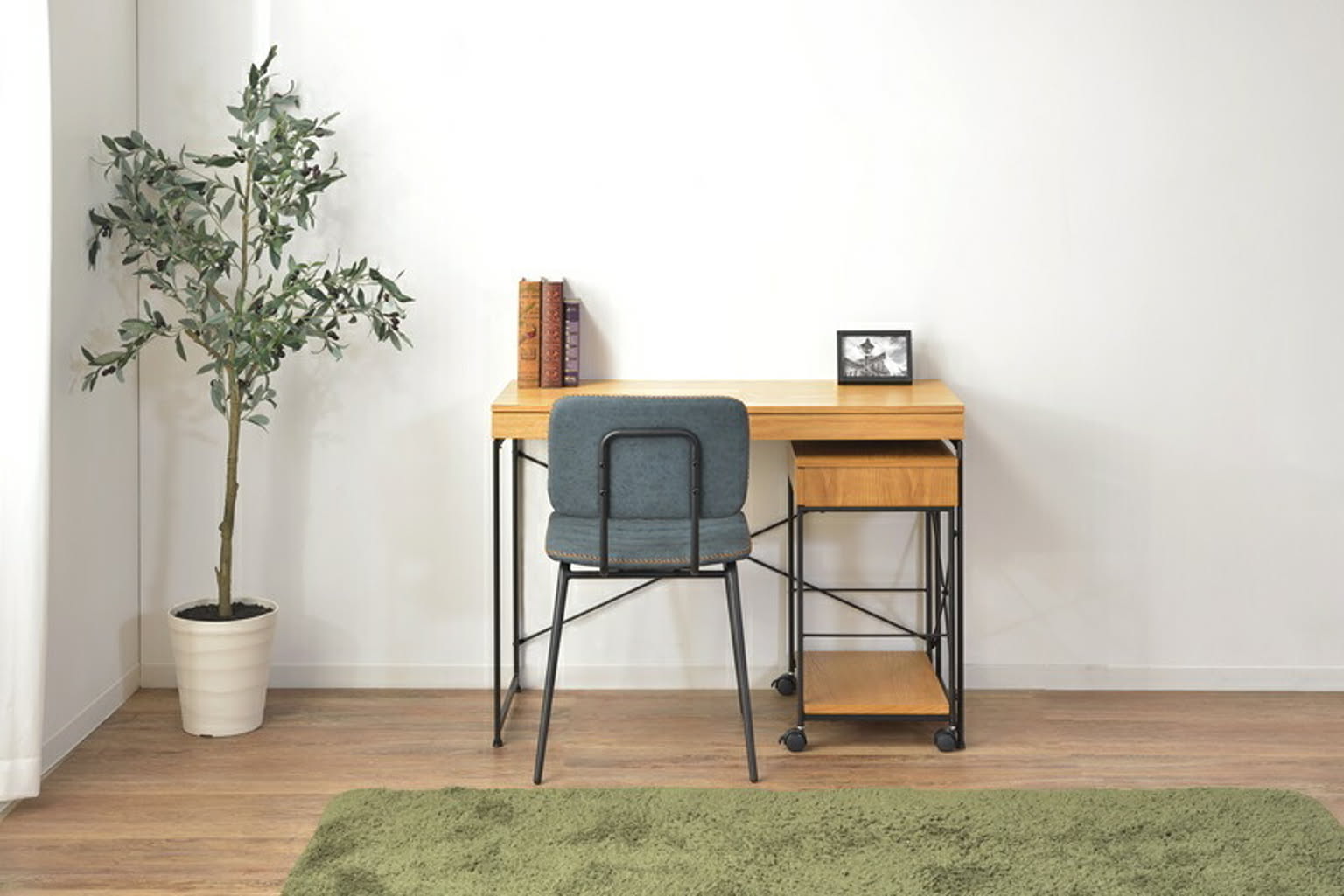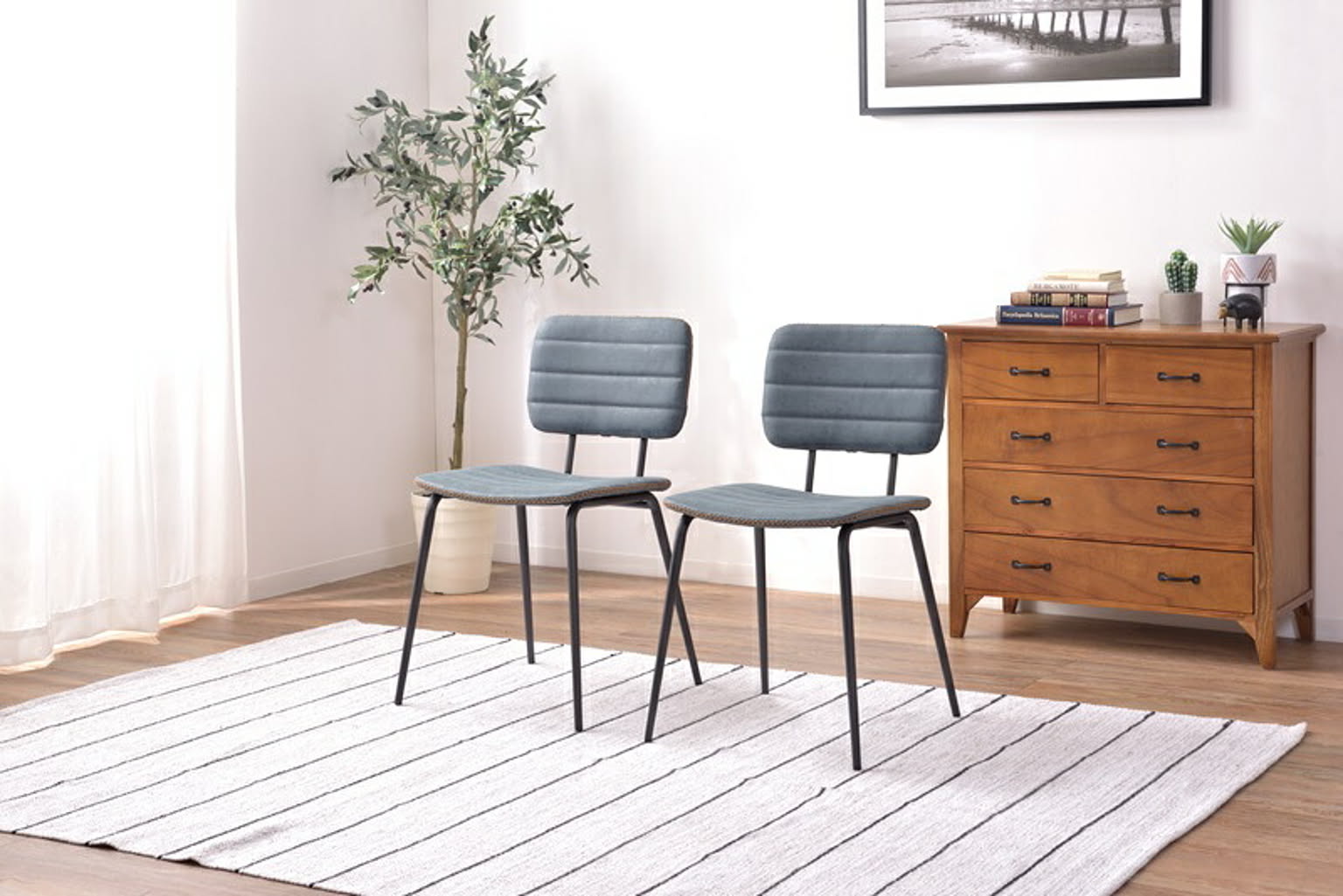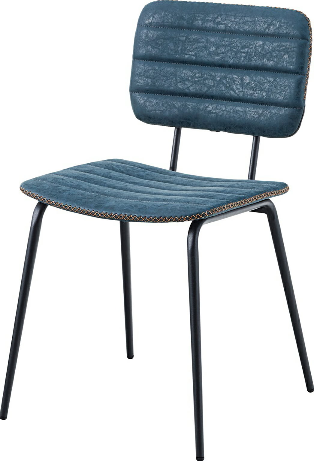 スチールフレームとレザーの組み合わせが、インダストリアルやヴィンテージなど様々なテイストに合うシンプルなチェア。ダイニングやデスクにもあわせやすいコンパクトな設計です。
