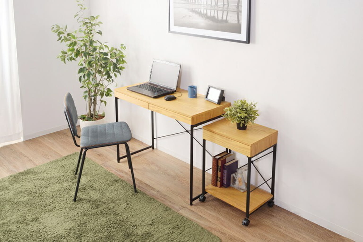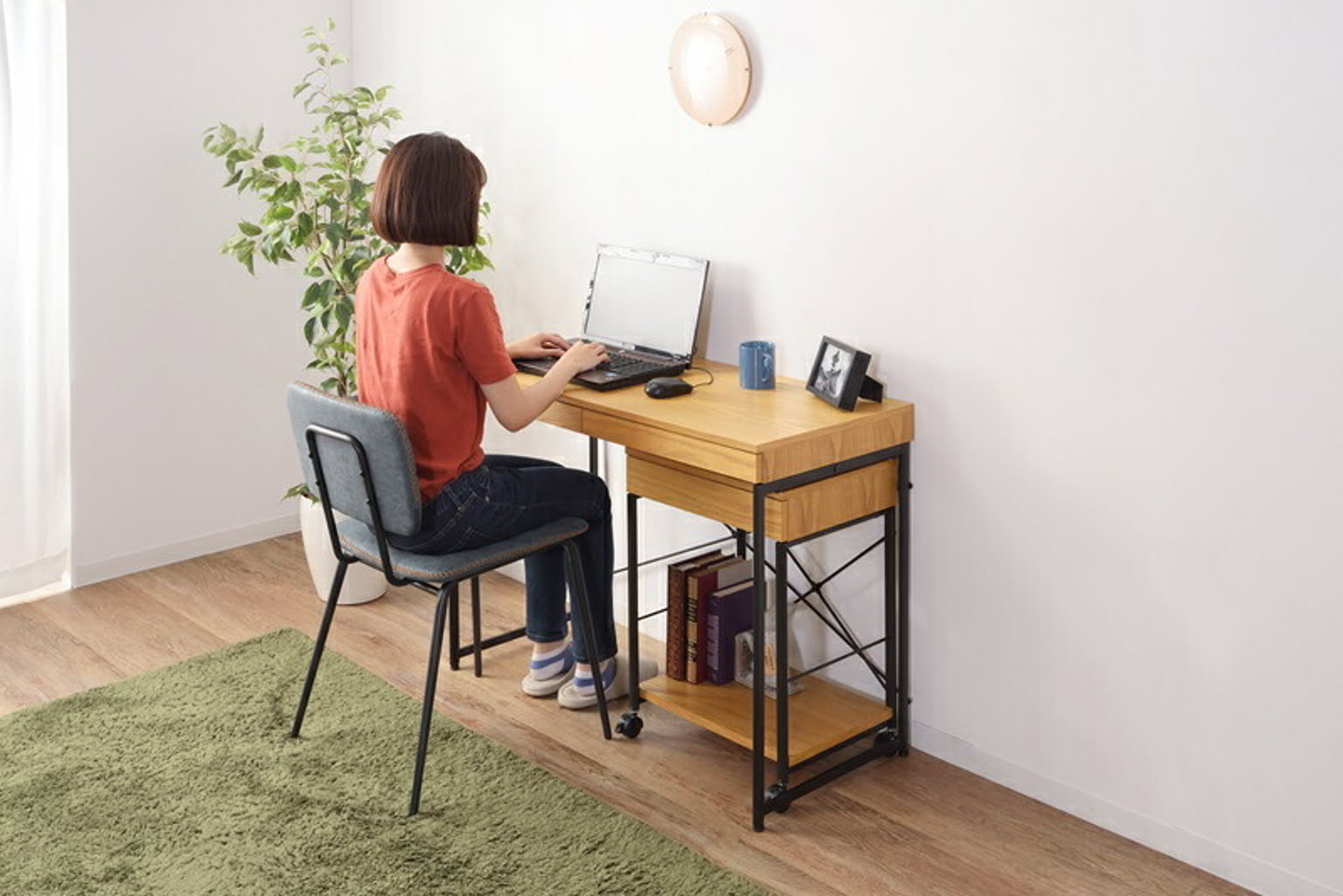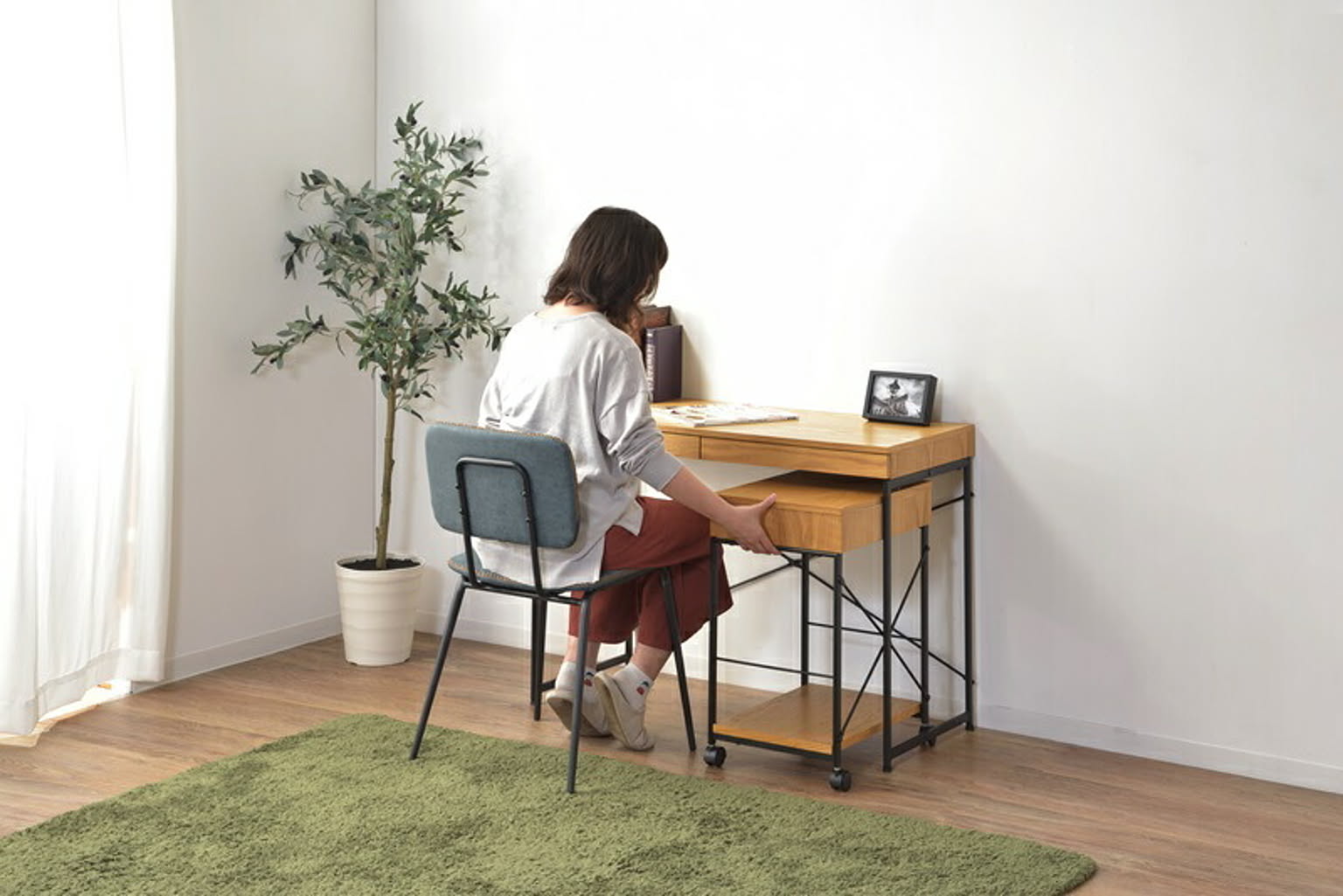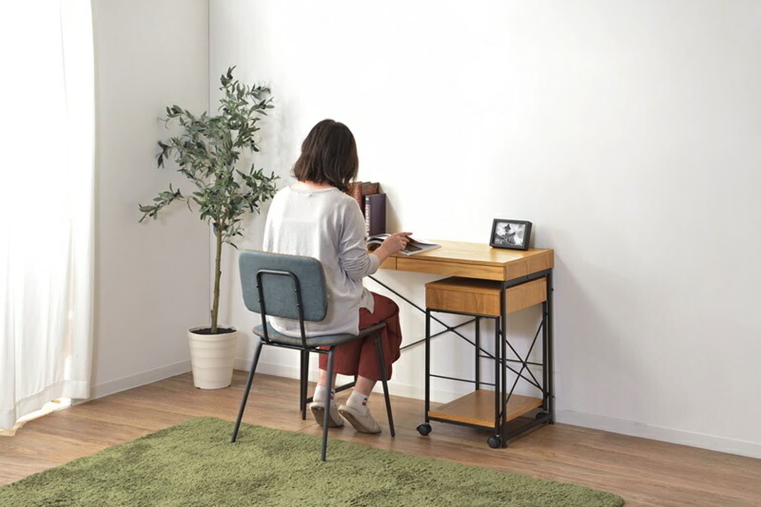 スチールフレームとレザーの組み合わせが、インダストリアルやヴィンテージなど様々なテイストに合うシンプルなチェア。ダイニングやデスクにもあわせやすいコンパクトな設計です。