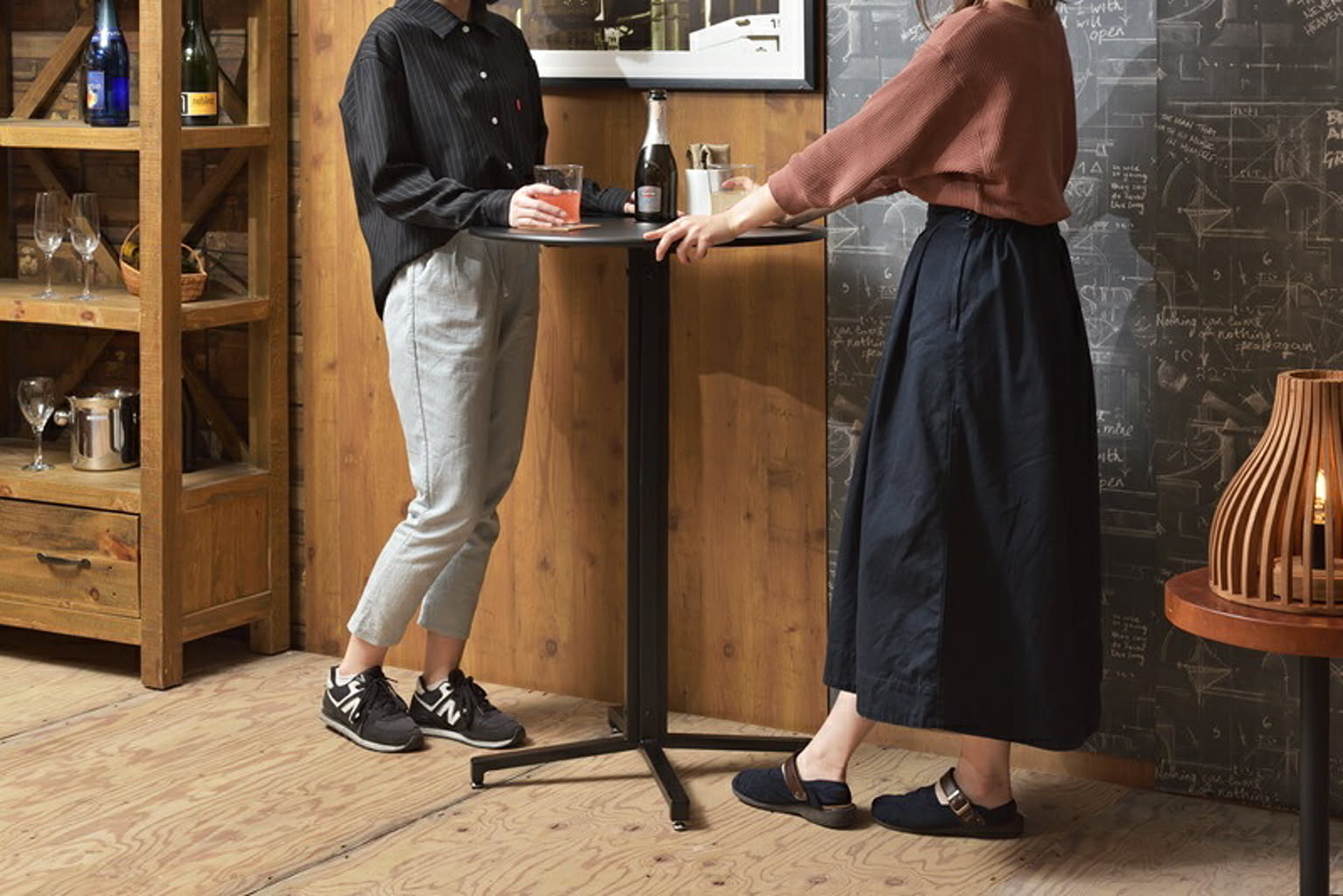 ハイテーブルはハイチェア、ハイスツールで合わせる提案だけではなく話題のスタンディングワークとしての提案もしてください。