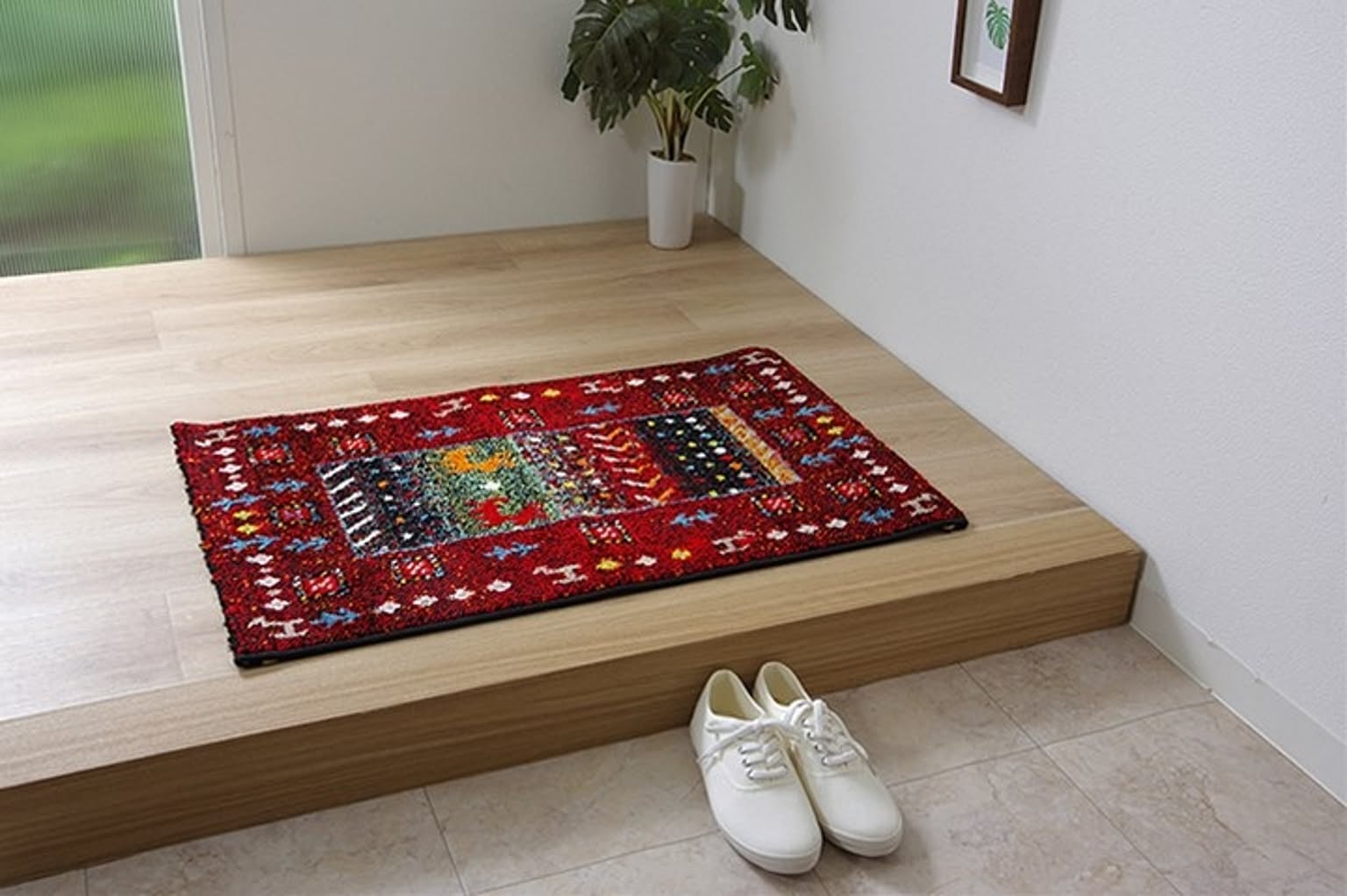 玄関マット トルコ製 ウィルトン織り 約60×90cm 抗菌防臭 消臭機能 へたりにくい レッド