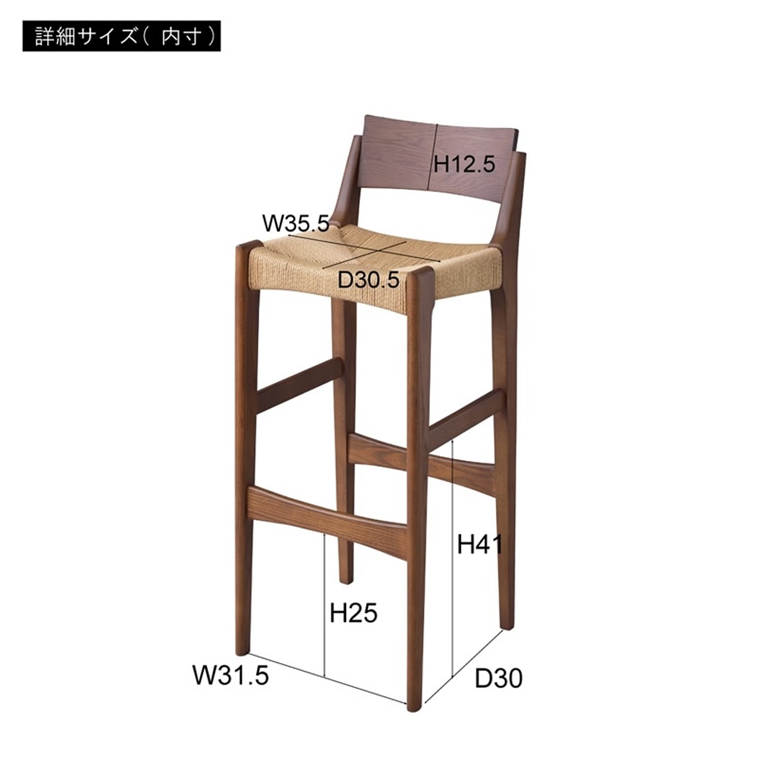 ペーパーコードハイチェア W36×D41×H90×SH70 ナチュラル