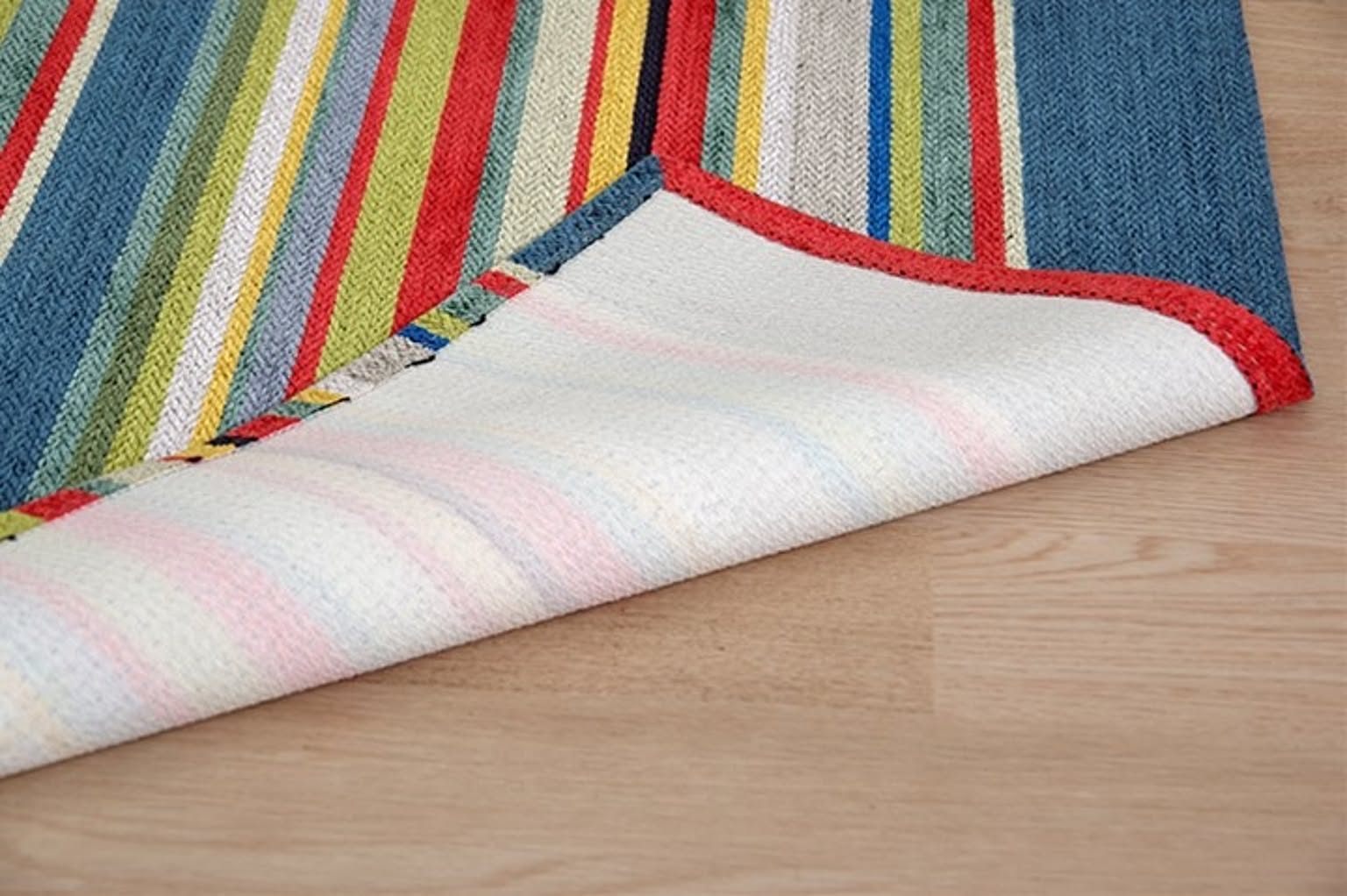 明るいデザインの玄関マットです。先染めタイプのため、色落ちもしにくく色合いも鮮やかです。薄めのタイプになるので、つまずいてしまう心配もございません。裏地には滑りにくく合成ゴムを使用しています。手洗いで、じゃぶじゃぶ洗うことが可能です。玄関だけでなく、ベッドサイドやソファー前などお部屋のワンポイントとしてもご使用できます。