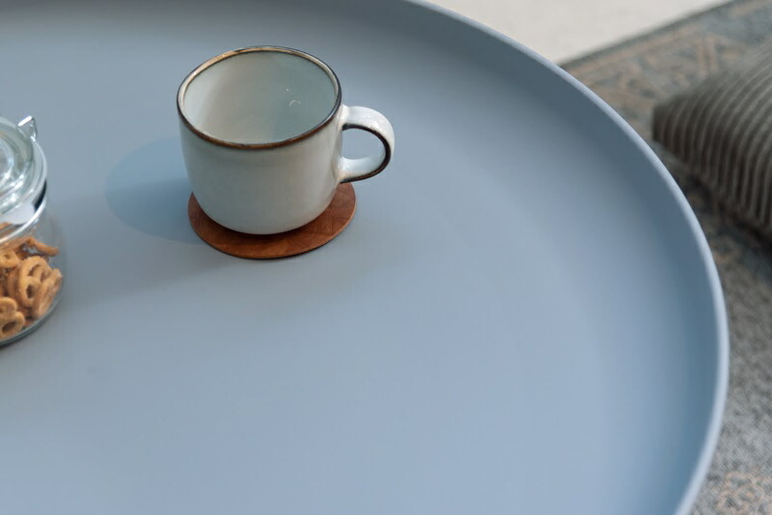 トレー型の天板になっている円形型テーブルです。非常にシンプルなフォルムでしっかりとしたベースが存在感を出し、インテリアのアクセントとなります。素材もポリプロピレンでメンテナンスもしやすいです。Sサイズ、Lサイズを組み合わせてネストテーブルとして使うことも可能です。置くだけで海外インテリア風な演出ができます。カラーも北欧スタイルでよく使われるカラーリングで展開しております。