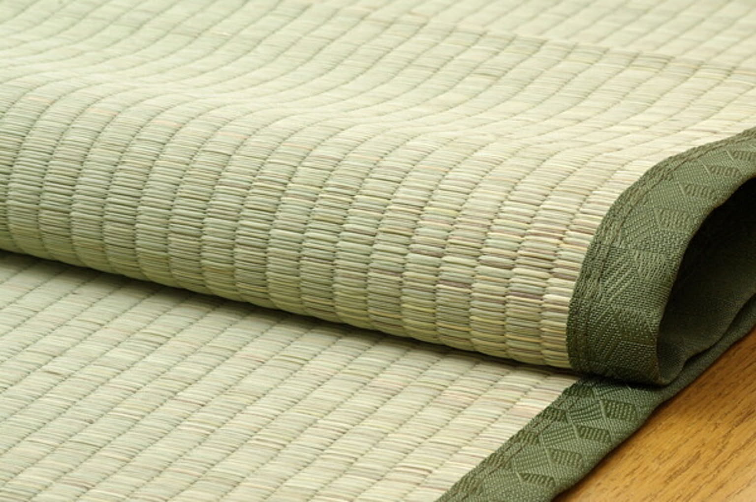 上敷きを敷くだけで畳のお部屋をリフレッシュ出来ます。日焼けしてしまった畳のリフレッシュに、新品の畳を汚さないためのカバーにご使用下さい。長さ105〜110cmの国産(九州産)い草を使用しています。そのうち約95cmを使用しています。ヘリ際は強く白みを帯びます(日焼けではありません、い草の根元と先端部分の色です。)が、安価でお求めやすい商品です。い草は長いものほど高級になります。い草は先端部分が赤茶色く、根元が白く真中が青(緑)色です。真中の良質な青の部分を多く使用するほど、丈夫で綺麗な仕上がりとなります。またイ草は使用するうちに日焼けをしますが、真中の青の部分を多く使用したものほど、全体が綺麗にムラなく日焼けし、味が出ます。国産(九州産)のい草を使用しています。国産い草は一本一本が太く、表皮が厚く繊維がキメ細かいので弾力性があり、耐久性に優れています。い草には空気の清浄化作用、湿度の調節作用があり、汚れにくいといった特徴があります。い草に青森ヒバ加工を施しています。(抗菌、防臭効果)表裏の両面が使えて経済的です。