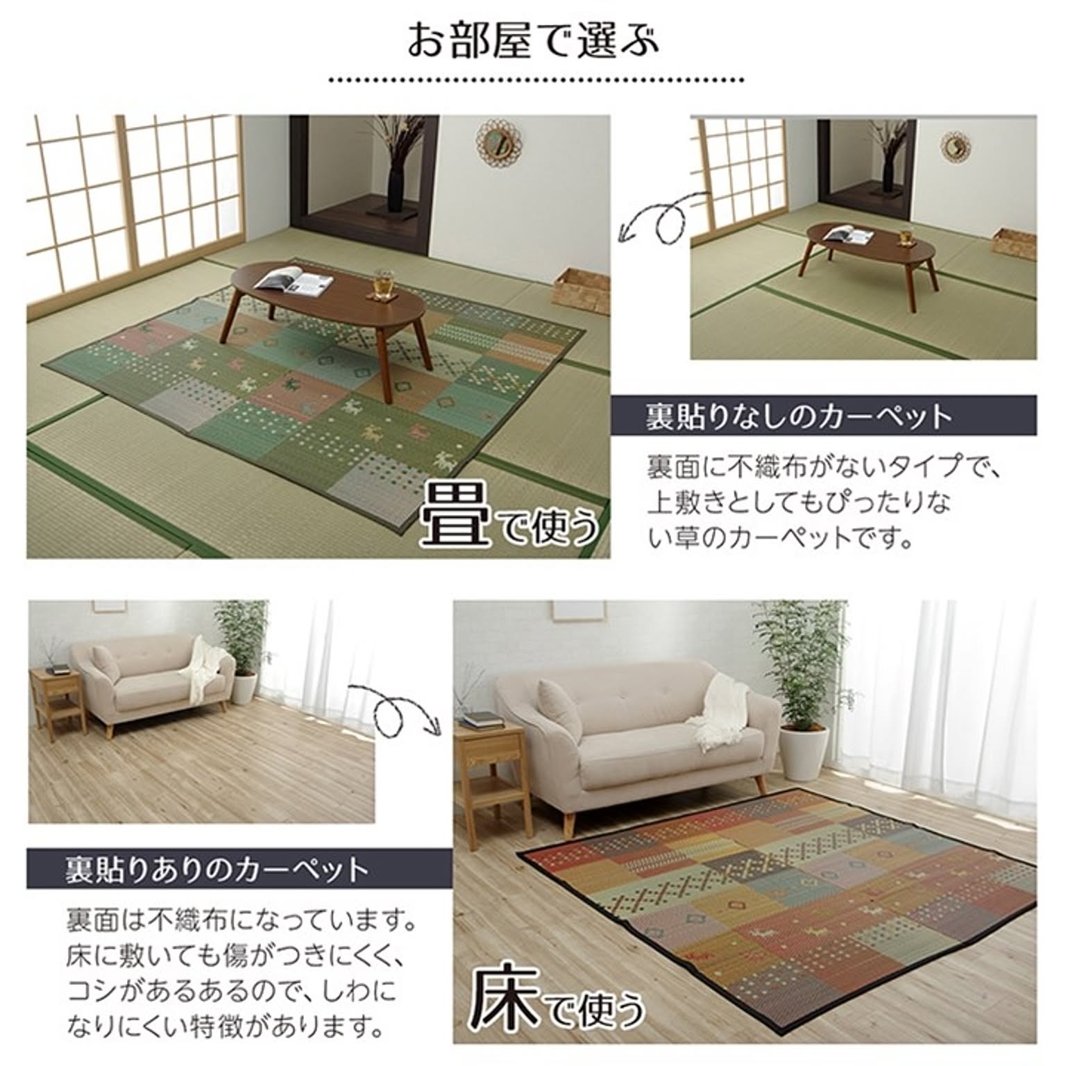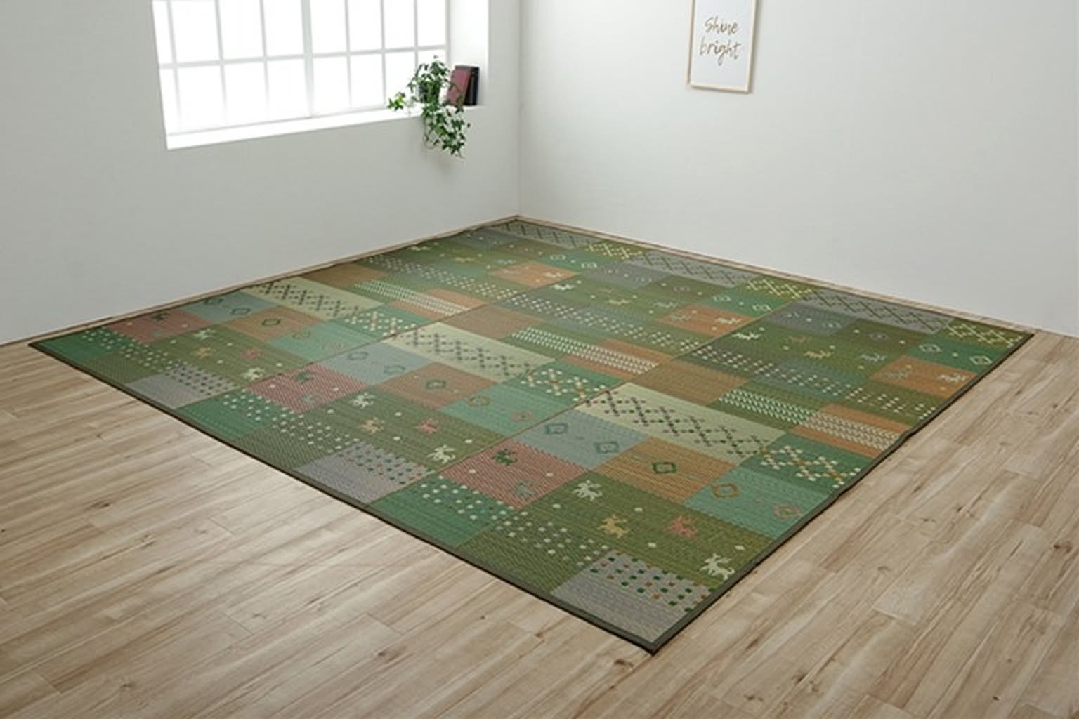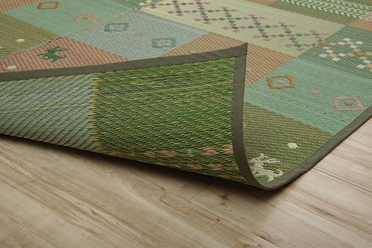 い草ラグ 花ござ カーペット ラグ 6畳 ギャッベ(ギャベ)柄 抗菌防臭 消臭 江戸間6畳 (約261×352cm) グリーン
