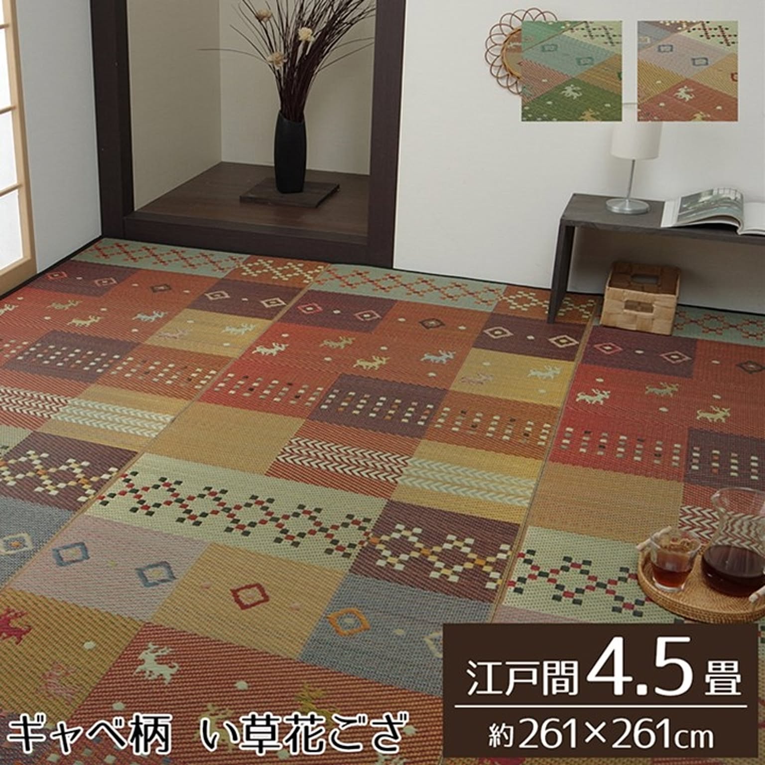 い草ラグ 花ござ カーペット ラグ 4.5畳 ギャッベ(ギャベ)柄 抗菌防臭 消臭 江戸間4.5畳 (約261×261cm) グリーン