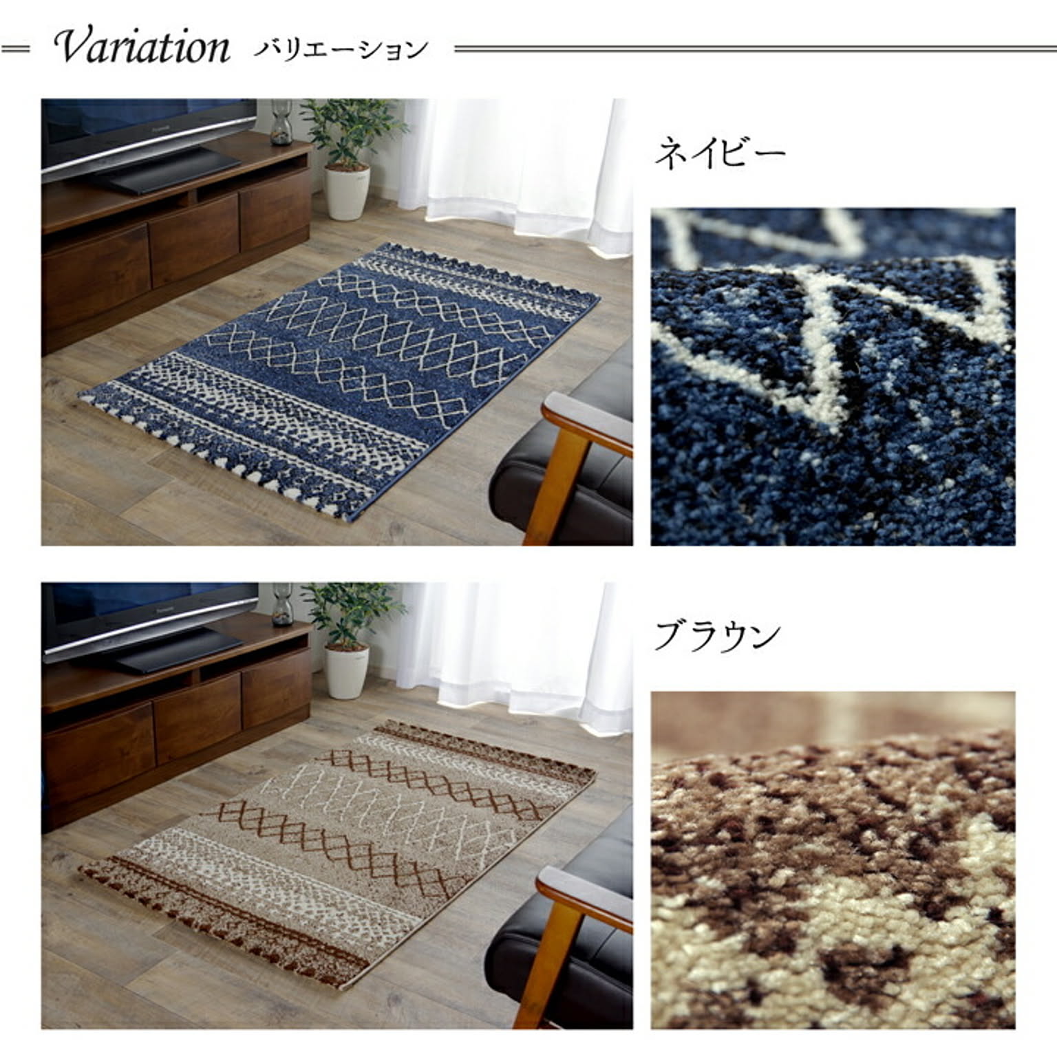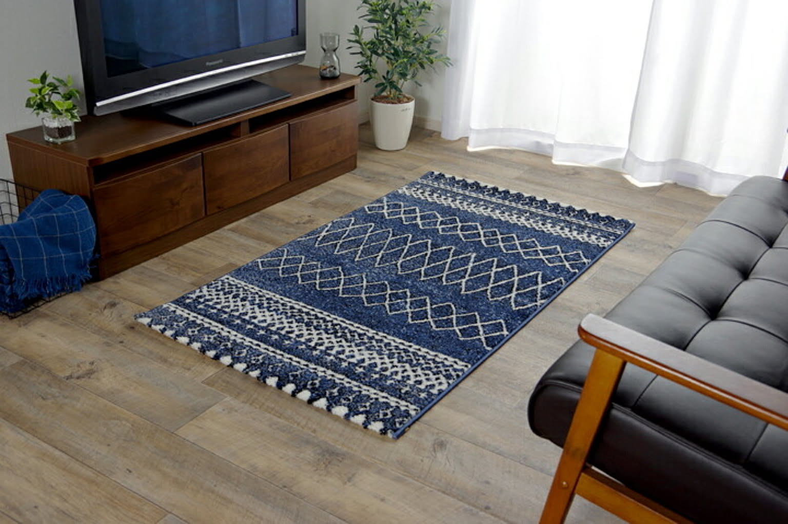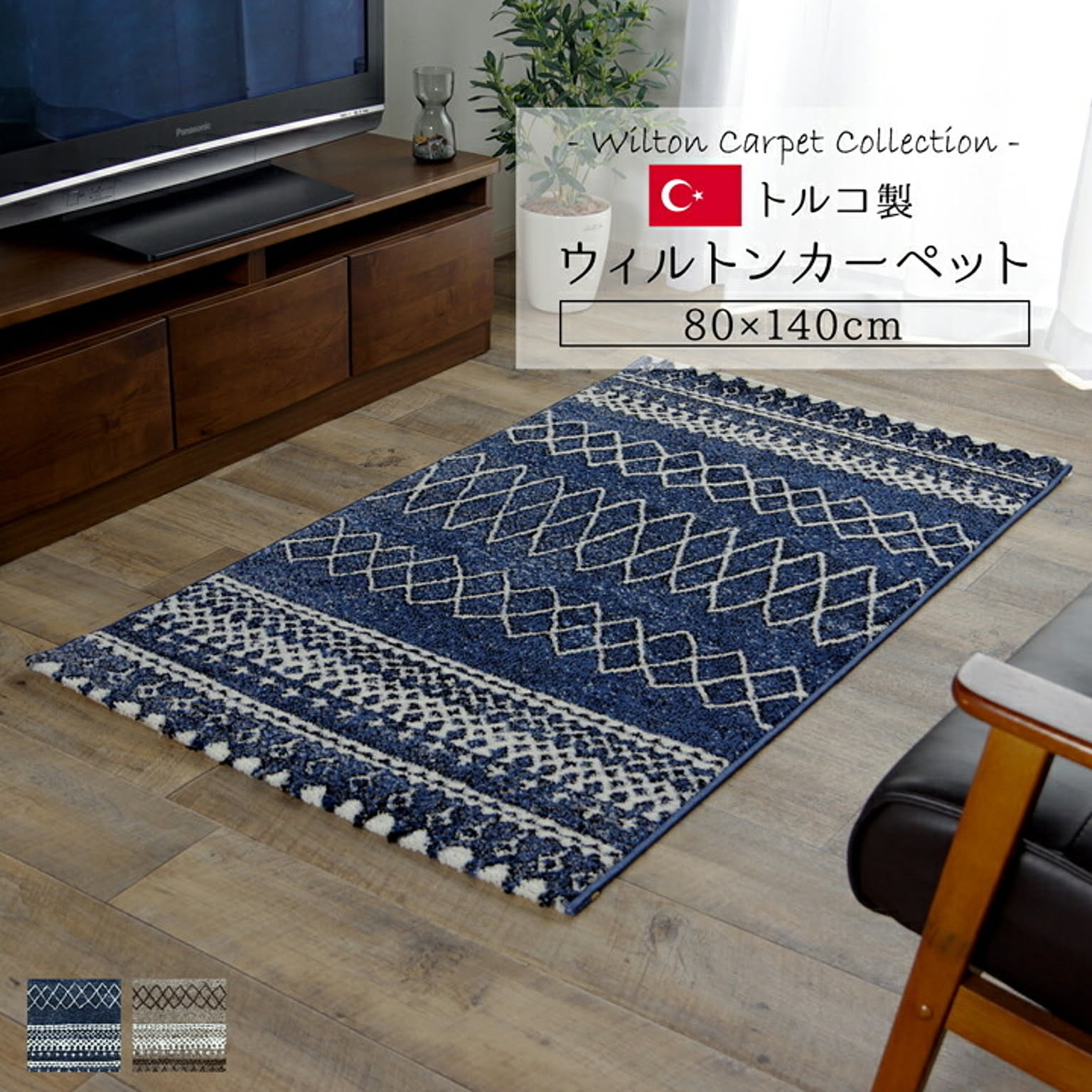 トルコ製 ウィルトン織カーペット 北欧調ラグ ネイビー 約80×140cm