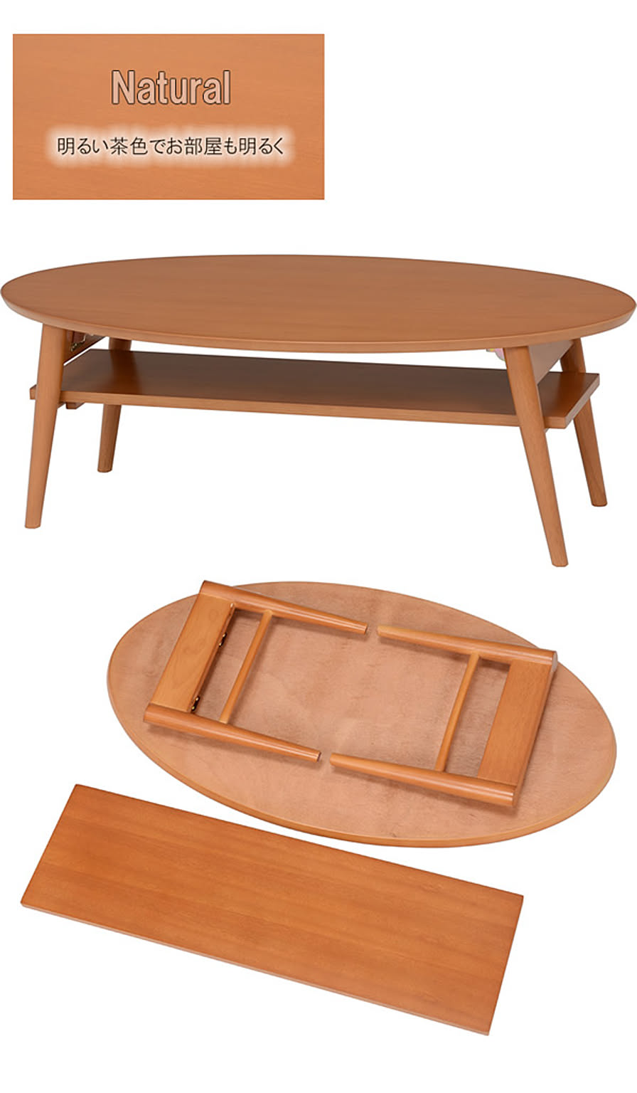 センターテーブル ローテーブル 棚付き 折れ脚 折脚 オーバル 楕円 : ナチュラル【matona】 (ナチュラル) 北欧 リビングテーブル 折りたたみ