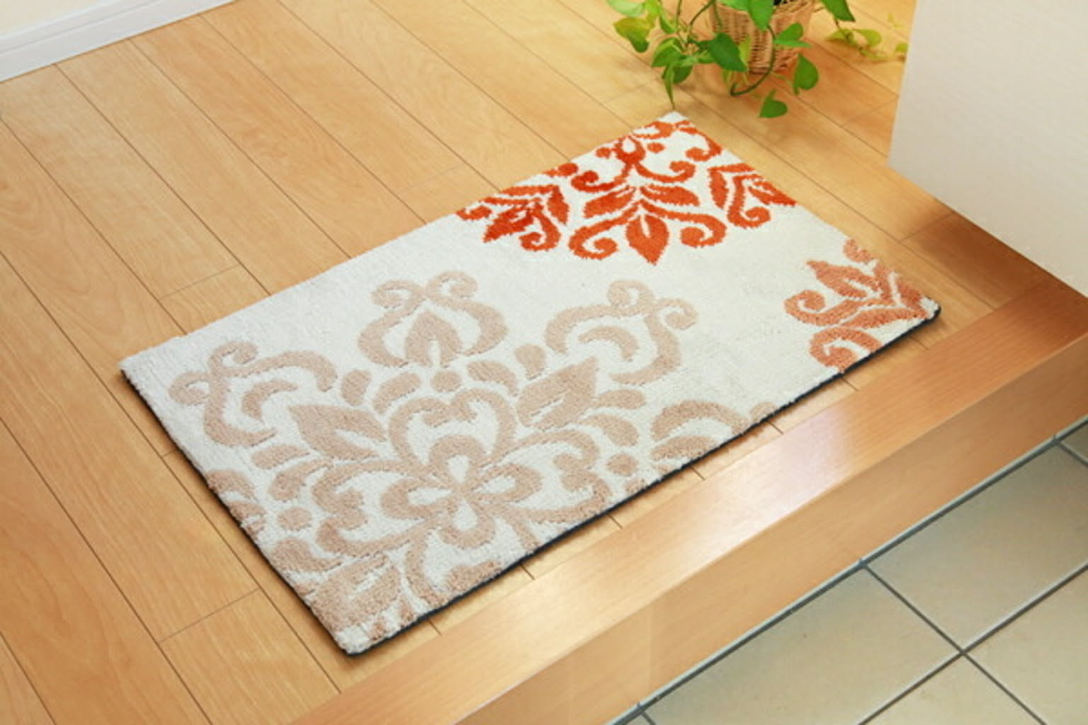 玄関マット マイクロファイバー 北欧調 『ニール』 オレンジ 約55×85cm 滑りにくい加工