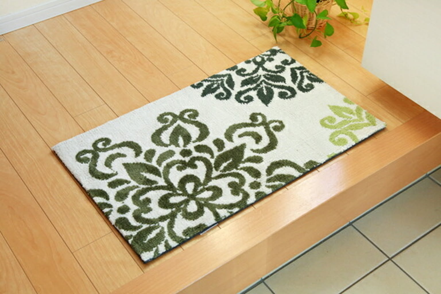 明るいアイボリーと爽やかな色彩がお部屋を明るく彩る玄関マットです。表地はパイル長10mmのマイクロファイバーをニット編みすることでより柔らかな肌触りを実現しました。ふわふわとした優しい踏み心地をお楽しみ下さい。裏面にはすべりにくい加工を施しています。