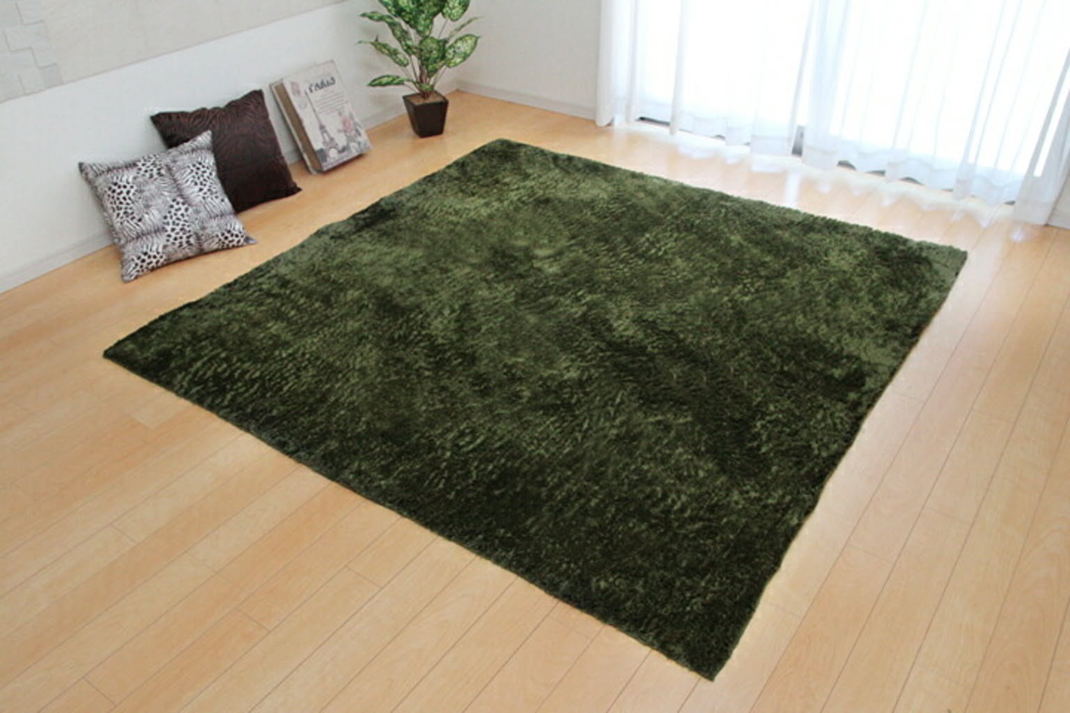 ラグ カーペット 1畳 無地 シャギー調 選べる7色 『ラルジュ』 グリーン 約90×185cm(ホットカーペット対応)