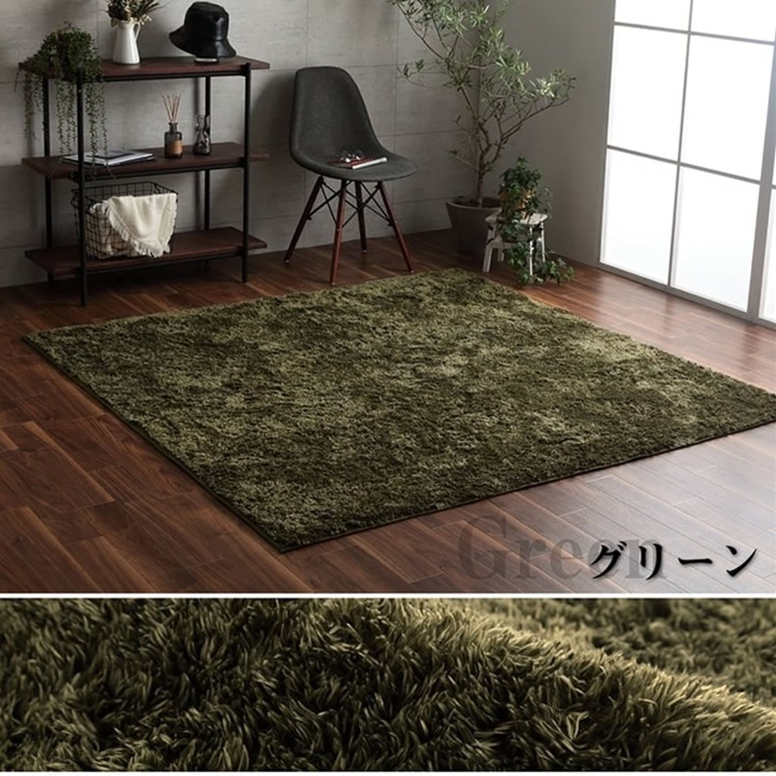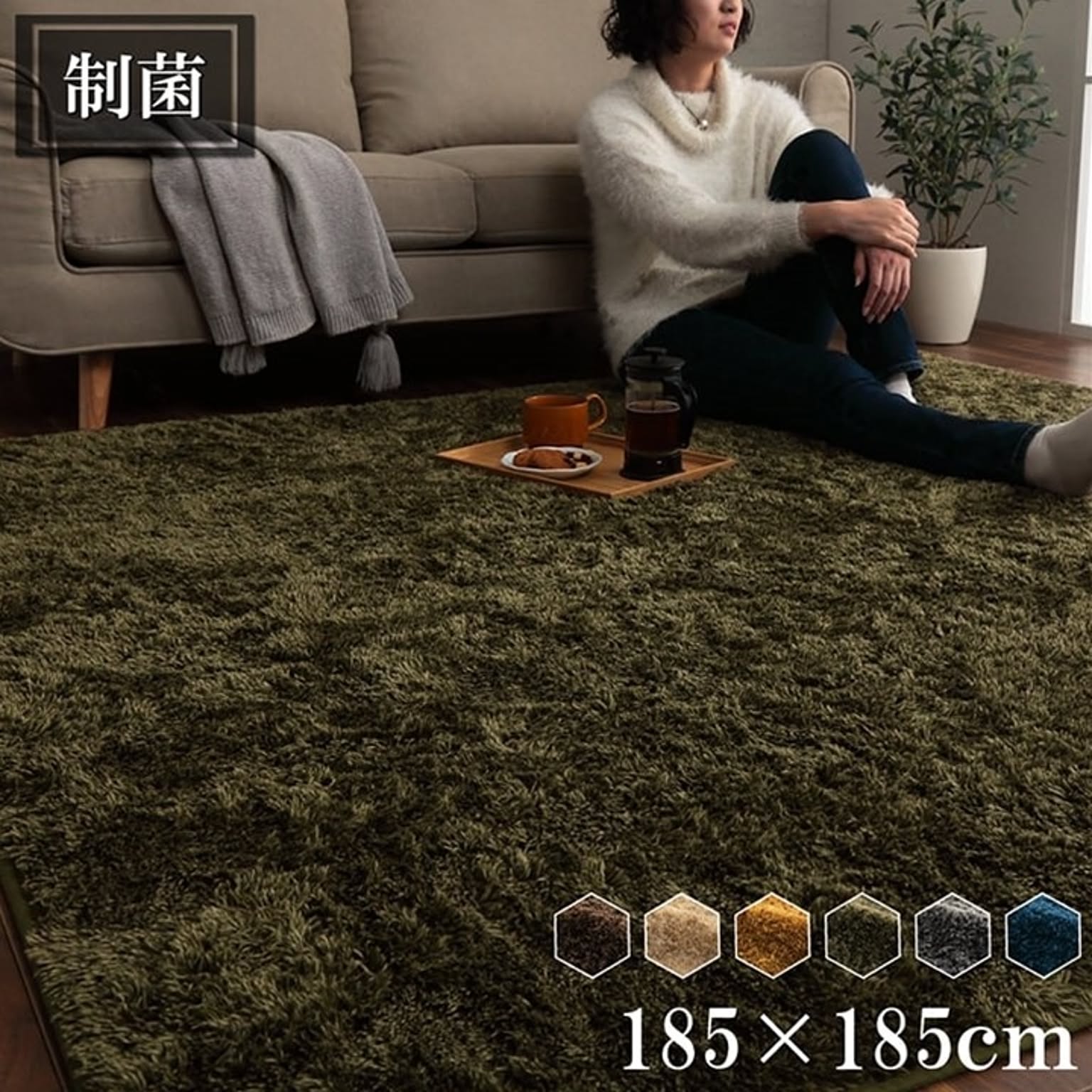 ラグ 正方形 シャギー 長毛 コンパクト 滑りにくい加工 制菌加工 洗える オールシーズン グレー 約2畳 約185×185cm 床暖房 ホットカーペット対応