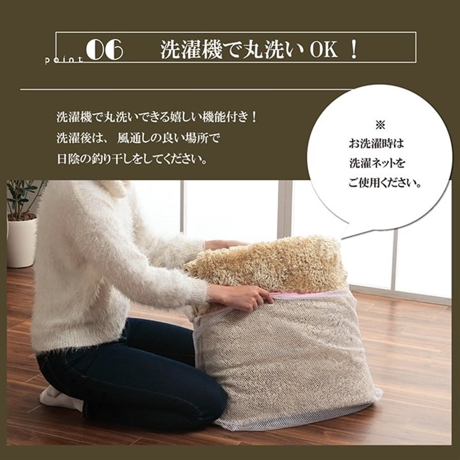 素材:表地=ポリエステル100%※パイル長22mm 中材=ウレタンフォーム5mm 裏地=不織布※滑り止め付き