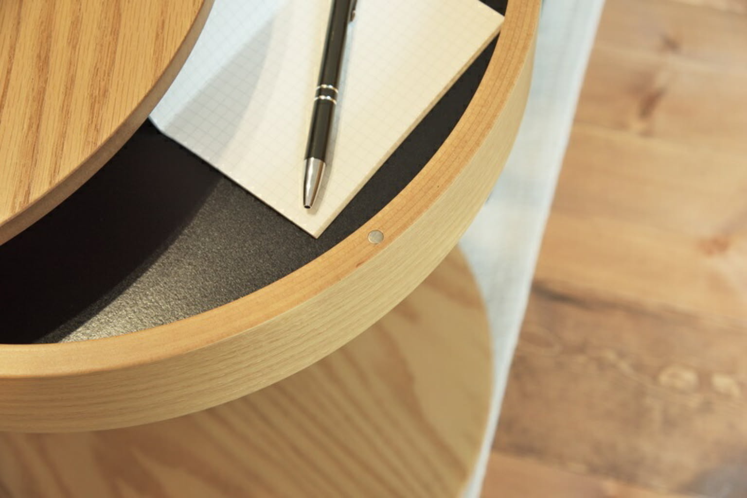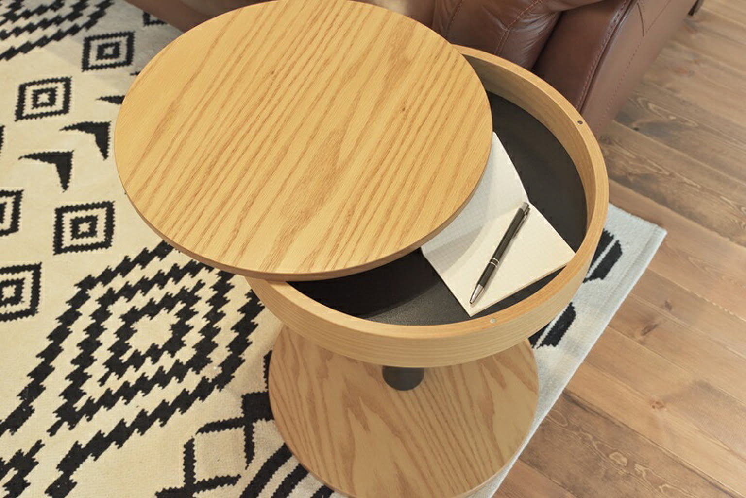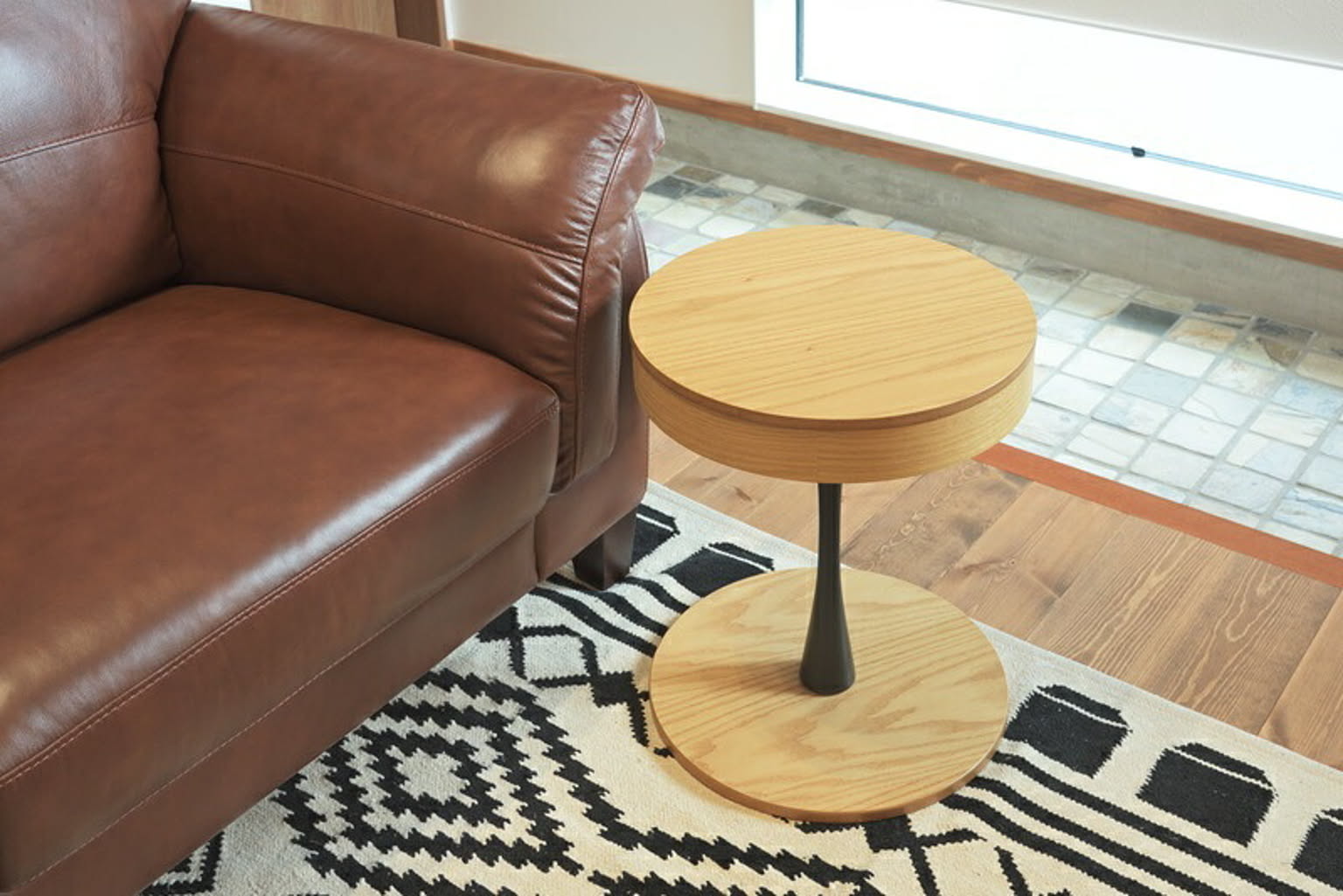 天板下にスペースのあるサイドテーブル 収納スペースがあることで天板上を広く使うことが可能に。