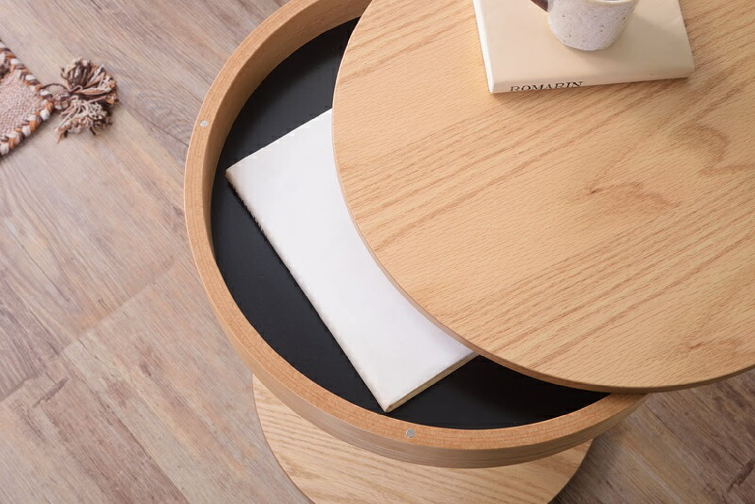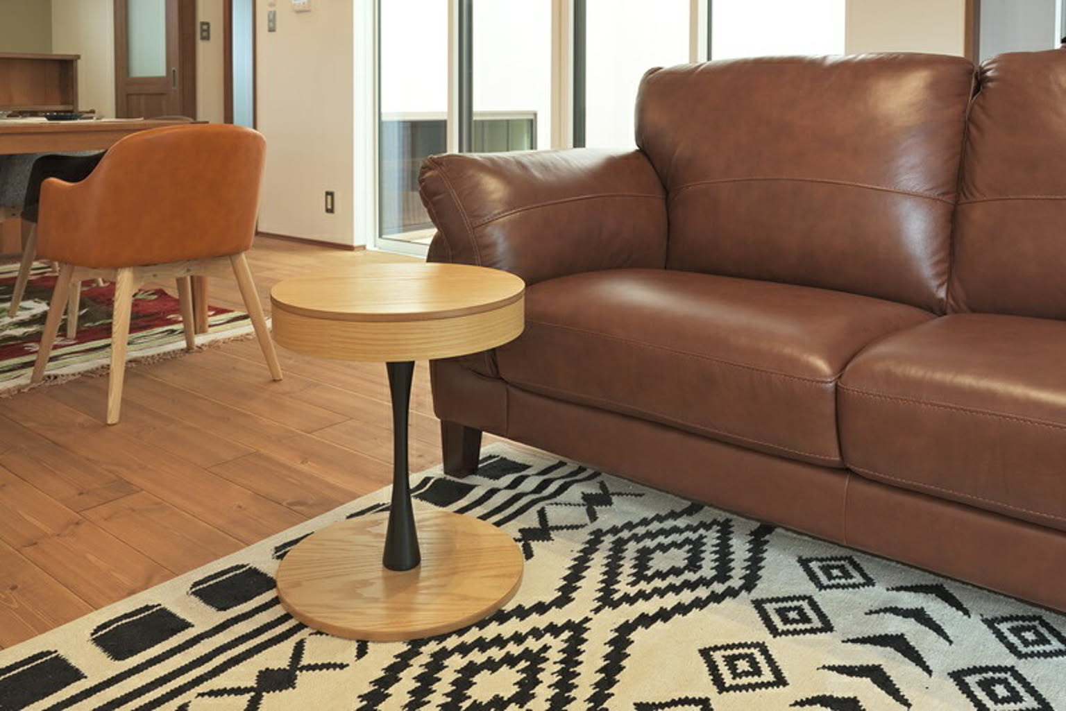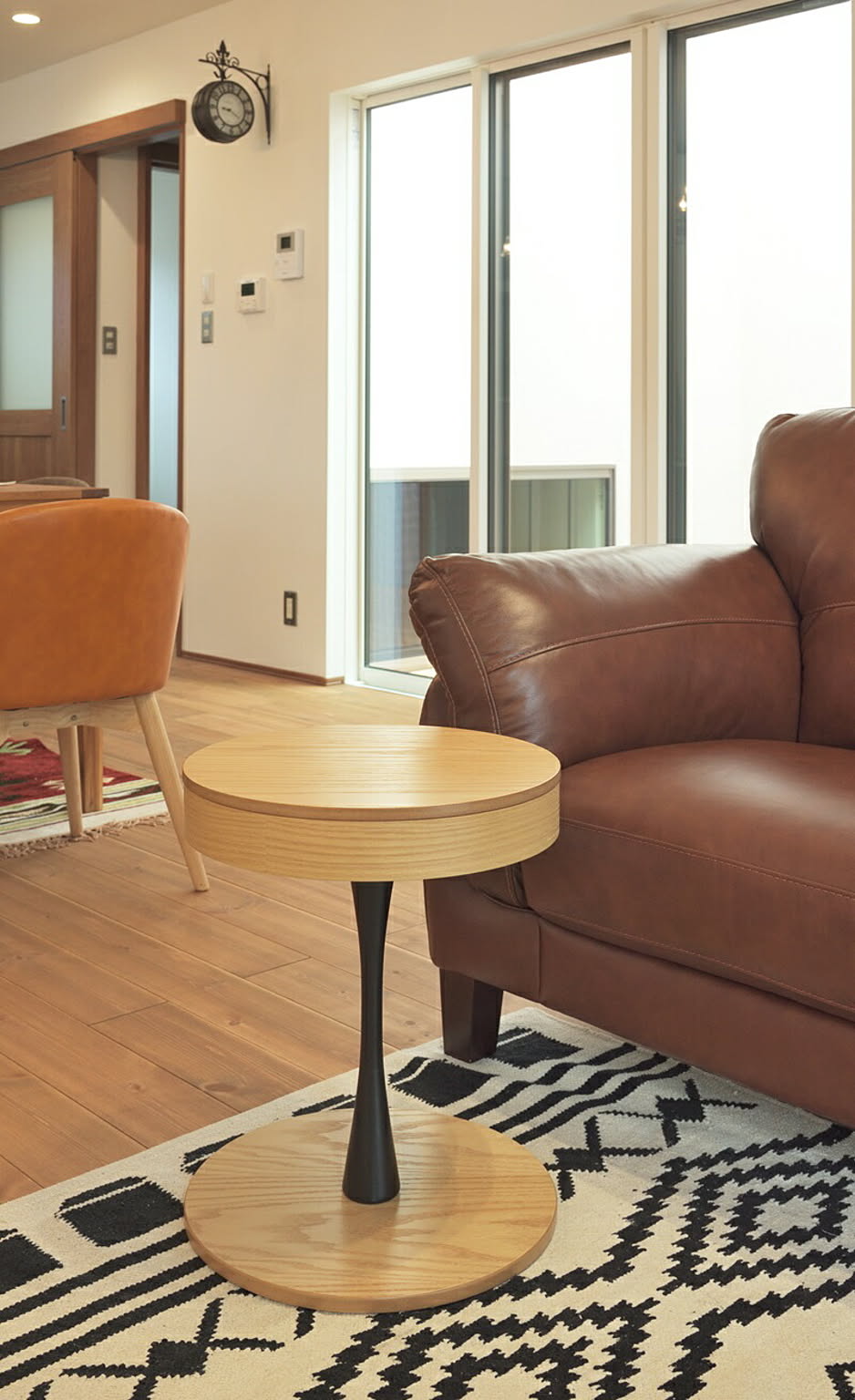 天板下にスペースのあるサイドテーブル 収納スペースがあることで天板上を広く使うことが可能に。