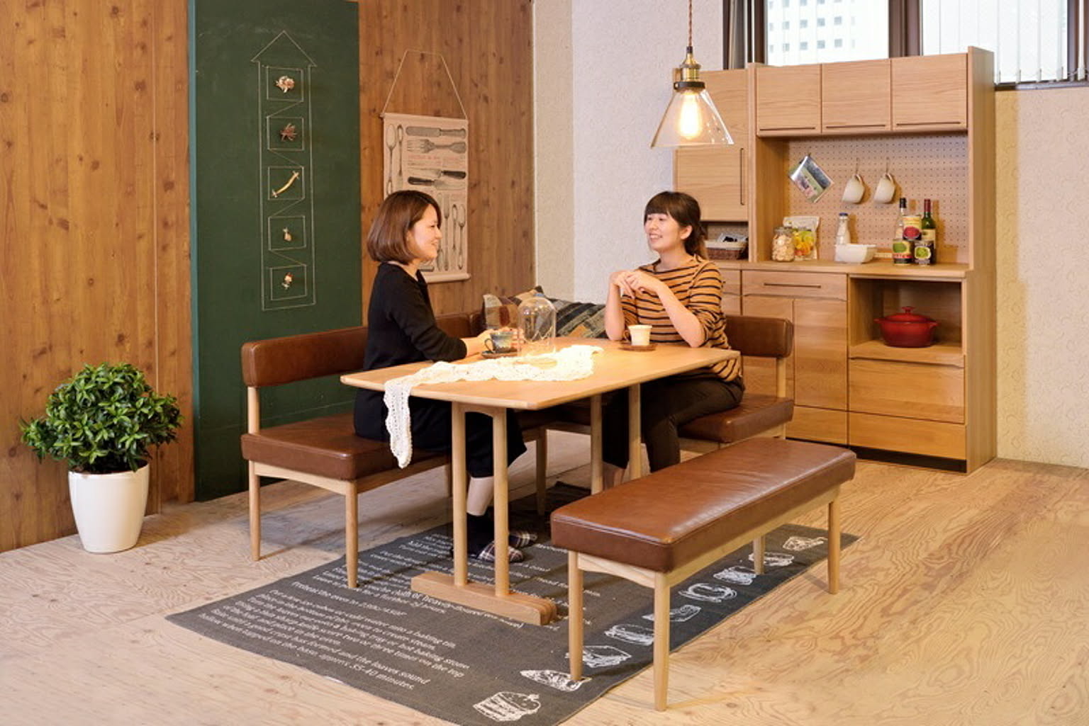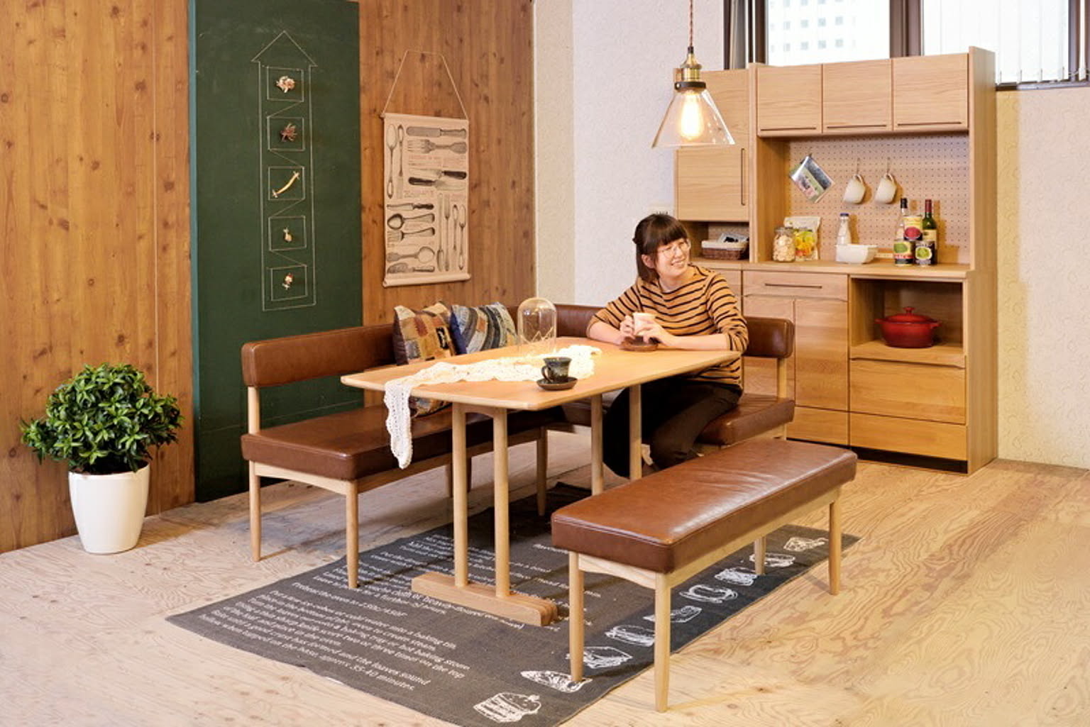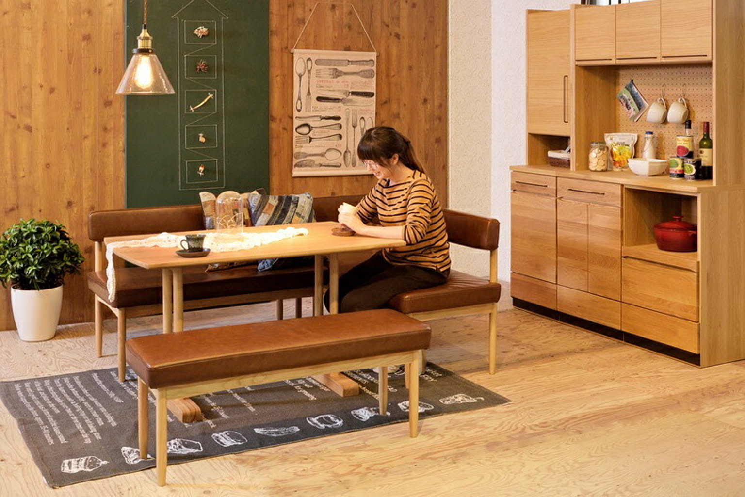 “あの時立ち寄ったおしゃれなカフェ”の雰囲気を、お部屋で再現できるダイニングシリーズ「ecomo」。 北欧風の暖かい印象のファブリックタイプに、追加で合皮タイプが新登場。合皮と天然木の組み合わせが、ほろにがい大人のカフェ空間に仕上げてくれます。