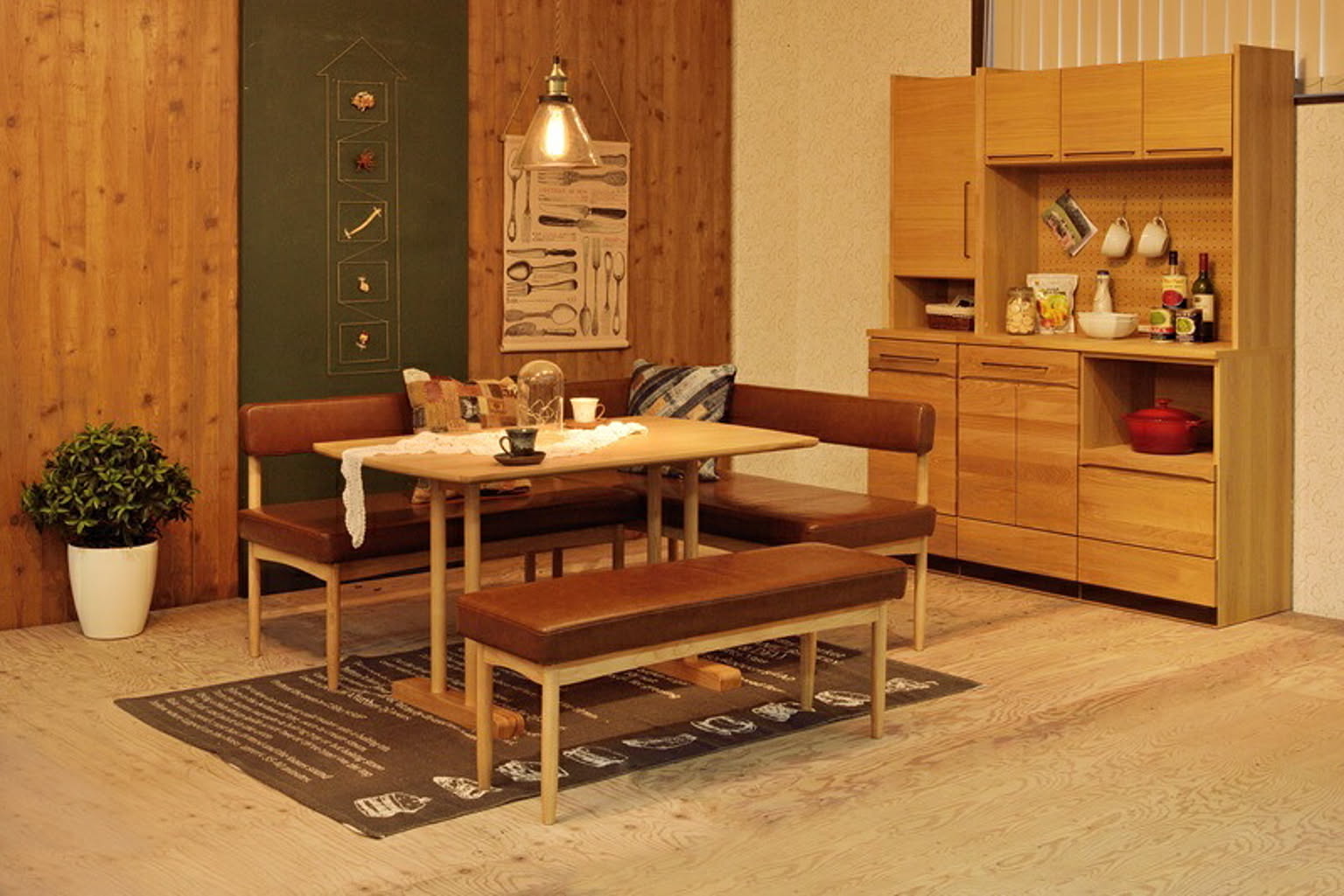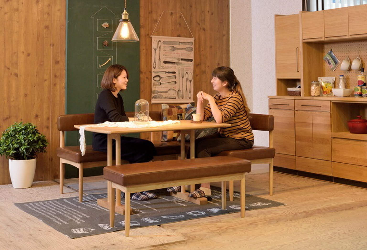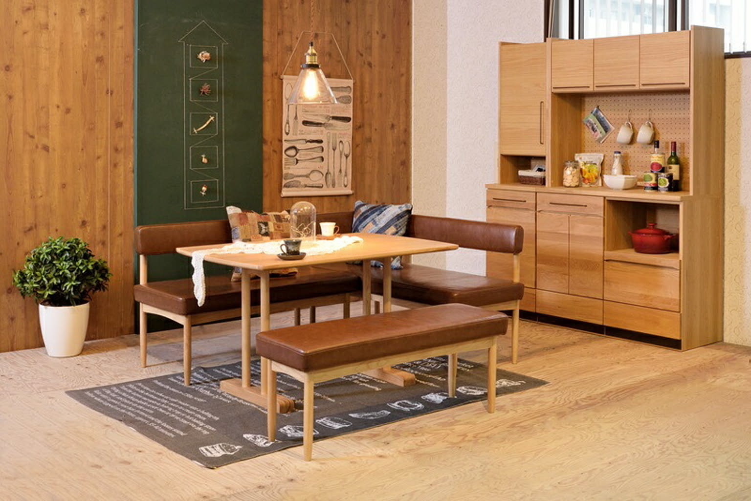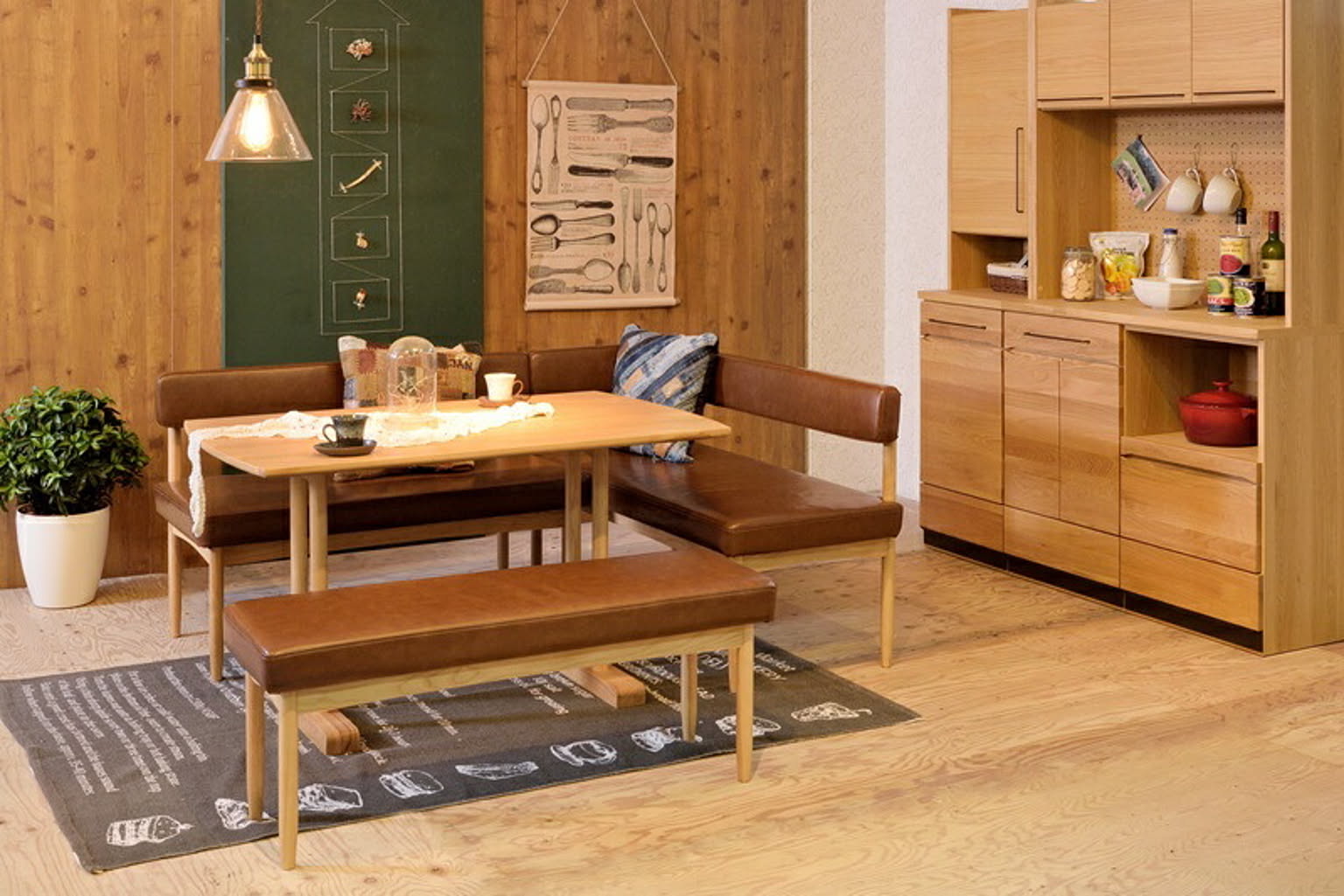 “あの時立ち寄ったおしゃれなカフェ”の雰囲気を、お部屋で再現できるダイニングシリーズ「ecomo」。 北欧風の暖かい印象のファブリックタイプに、追加で合皮タイプが新登場。合皮と天然木の組み合わせが、ほろにがい大人のカフェ空間に仕上げてくれます。