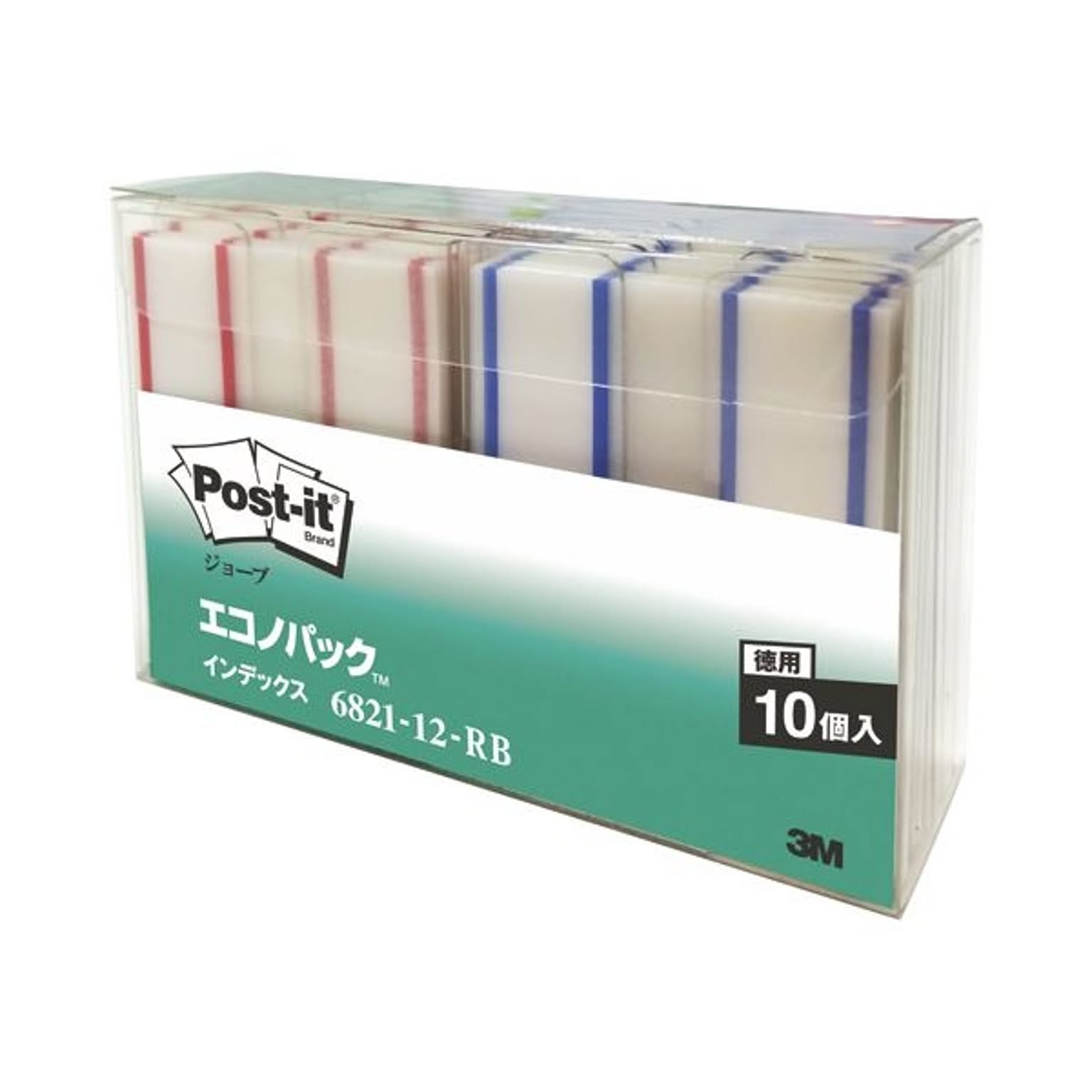 (まとめ) 3M ポストイット ジョーブ エコノパック インデックス(記入用) 44×50mm レッド・ブルー 6821-12-RB 1パック(10個:各色5個) 【×2セット】
