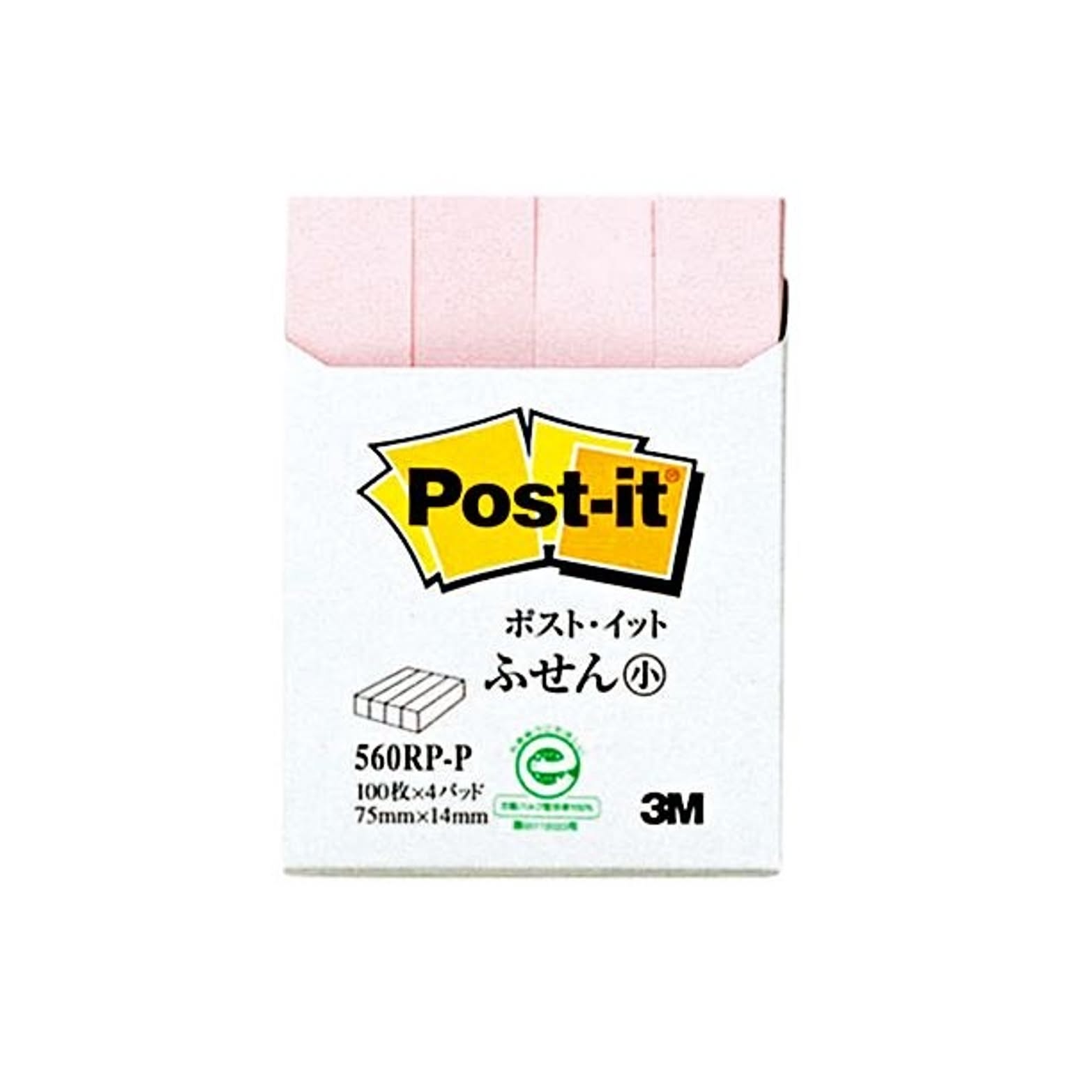 (まとめ) 3M ポストイット ふせん小 再生紙スタンダードカラー 75×14mm ピンク 560RP-P 1パック(4冊) 【×15セット】
