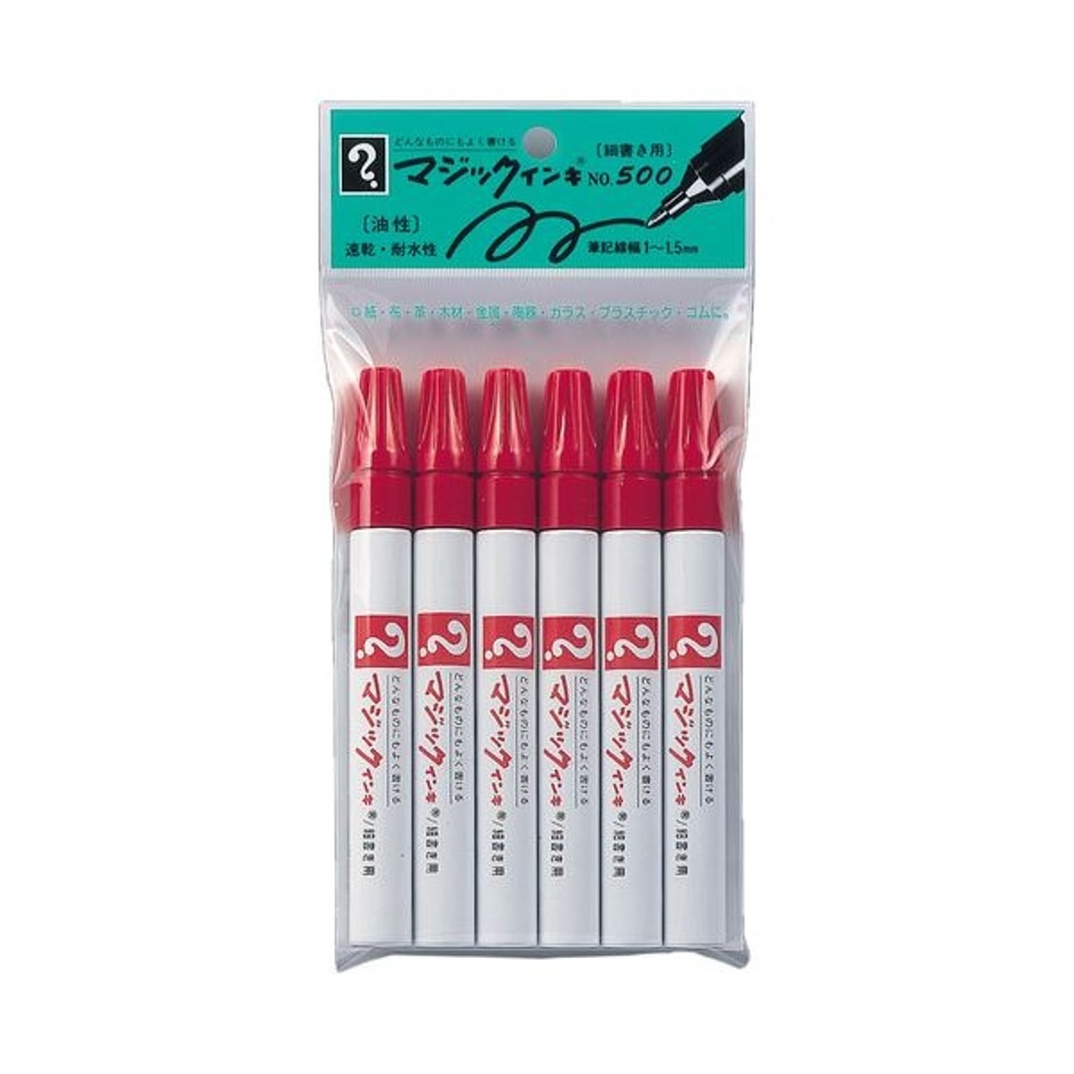 (まとめ) 寺西化学 油性マーカー マジックインキ No.500(細書き用) 赤 M500-T2-6P 1パック(6本) 【×5セット】