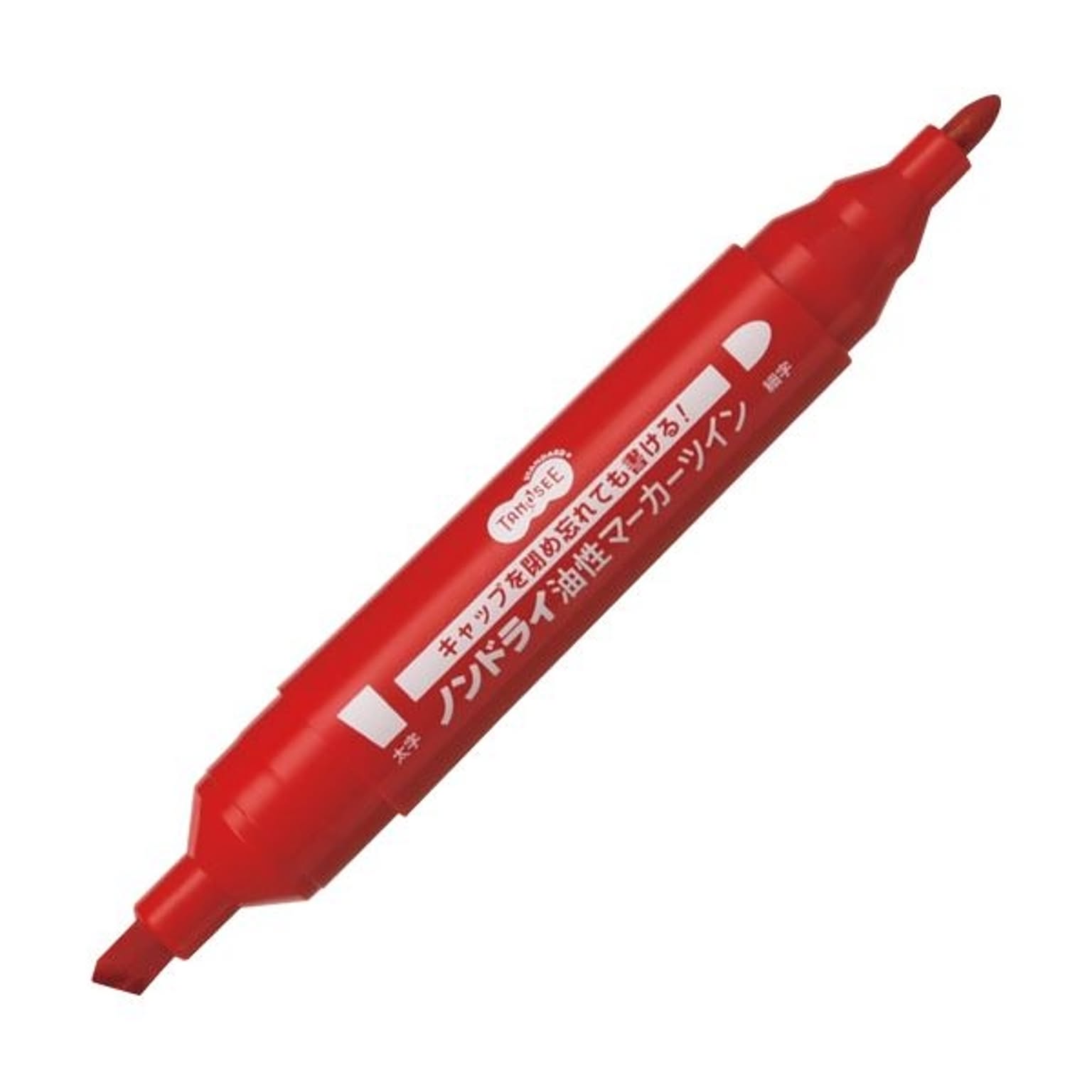 (まとめ) TANOSEEキャップ式ノンドライ油性マーカー ツイン 太字+細字 赤 1本 【×50セット】