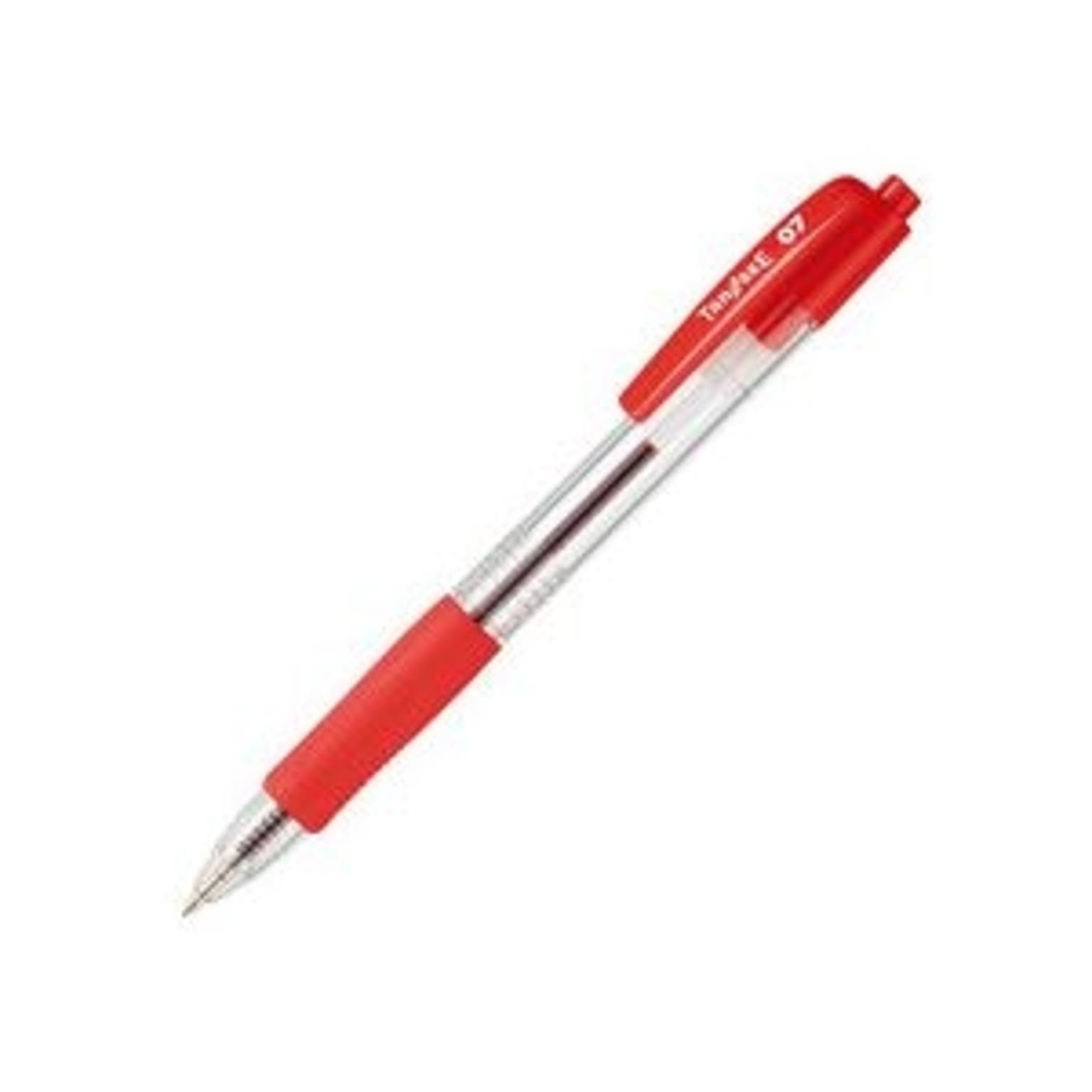 (まとめ) TANOSEE ノック式油性ボールペン0.7mm 赤 (軸色:クリア) 1箱(10本) 【×10セット】