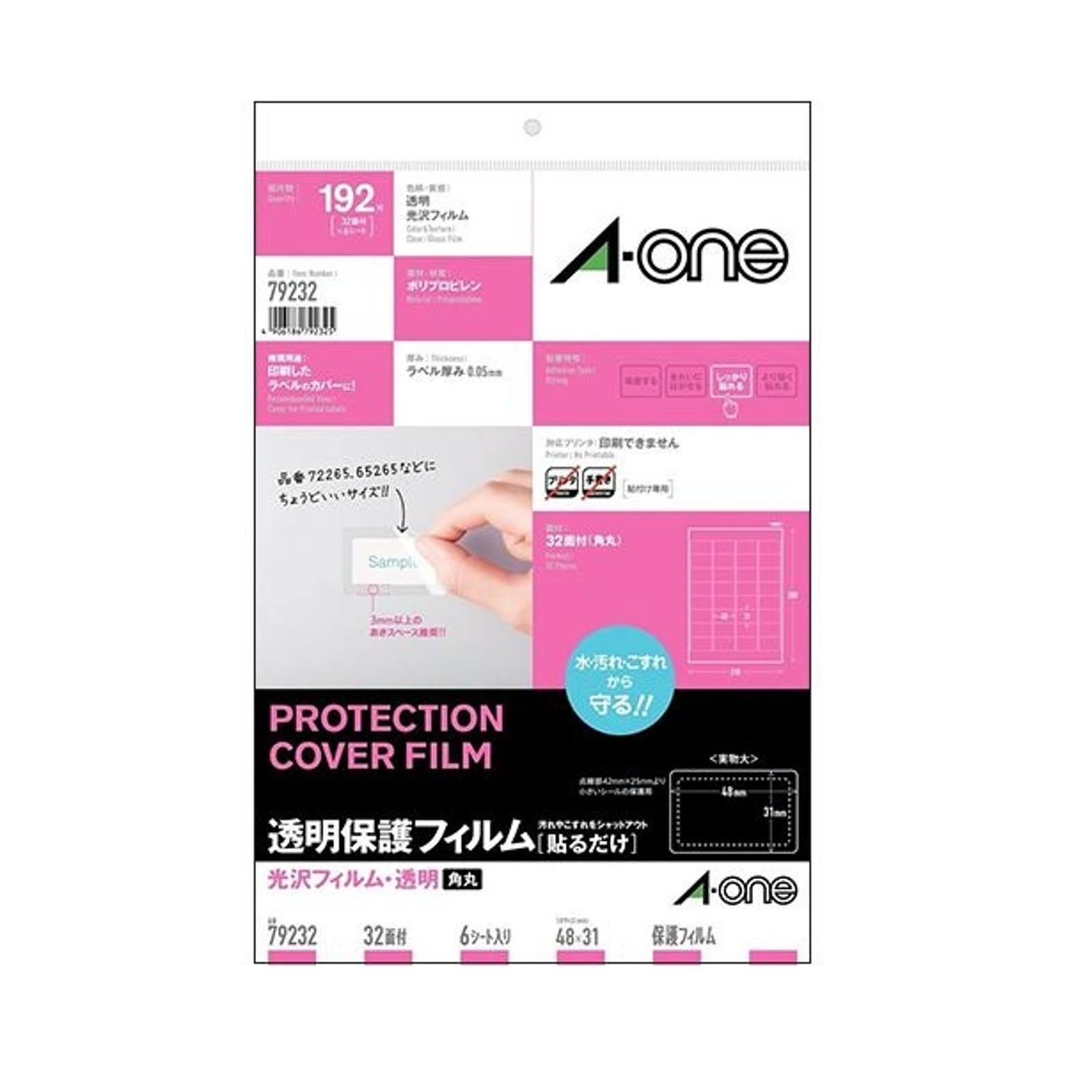(まとめ) エーワン 透明保護フィルム A4変型32面 ラベルサイズ48×31mm 79232 1冊(6シート) 【×10セット】
