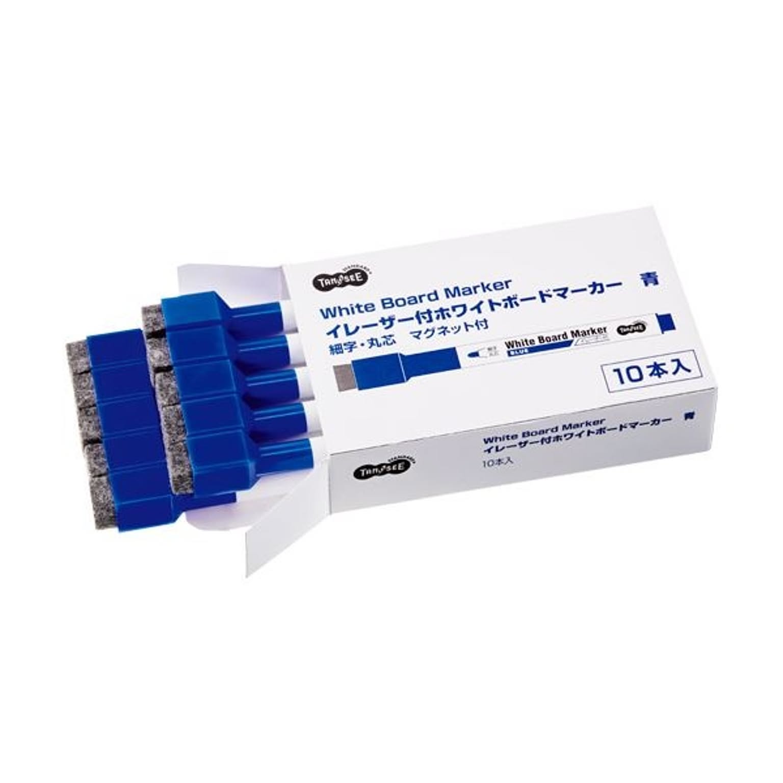 (まとめ) TANOSEEイレーザー付ホワイトボードマーカー 細字・丸芯 青 1セット(10本) 【×5セット】