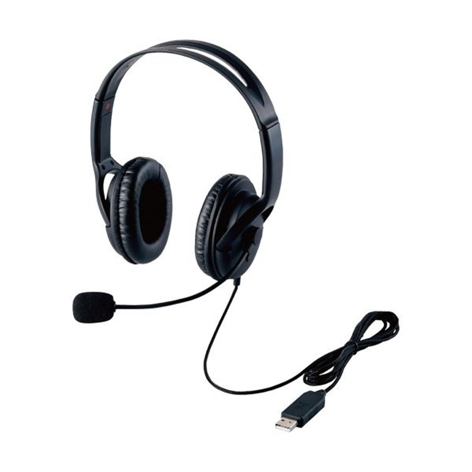 (まとめ)エレコムUSBヘッドセット(両耳大型オーバーヘッドタイプ) ブラック HS-HP28UBK 1個【×2セット】