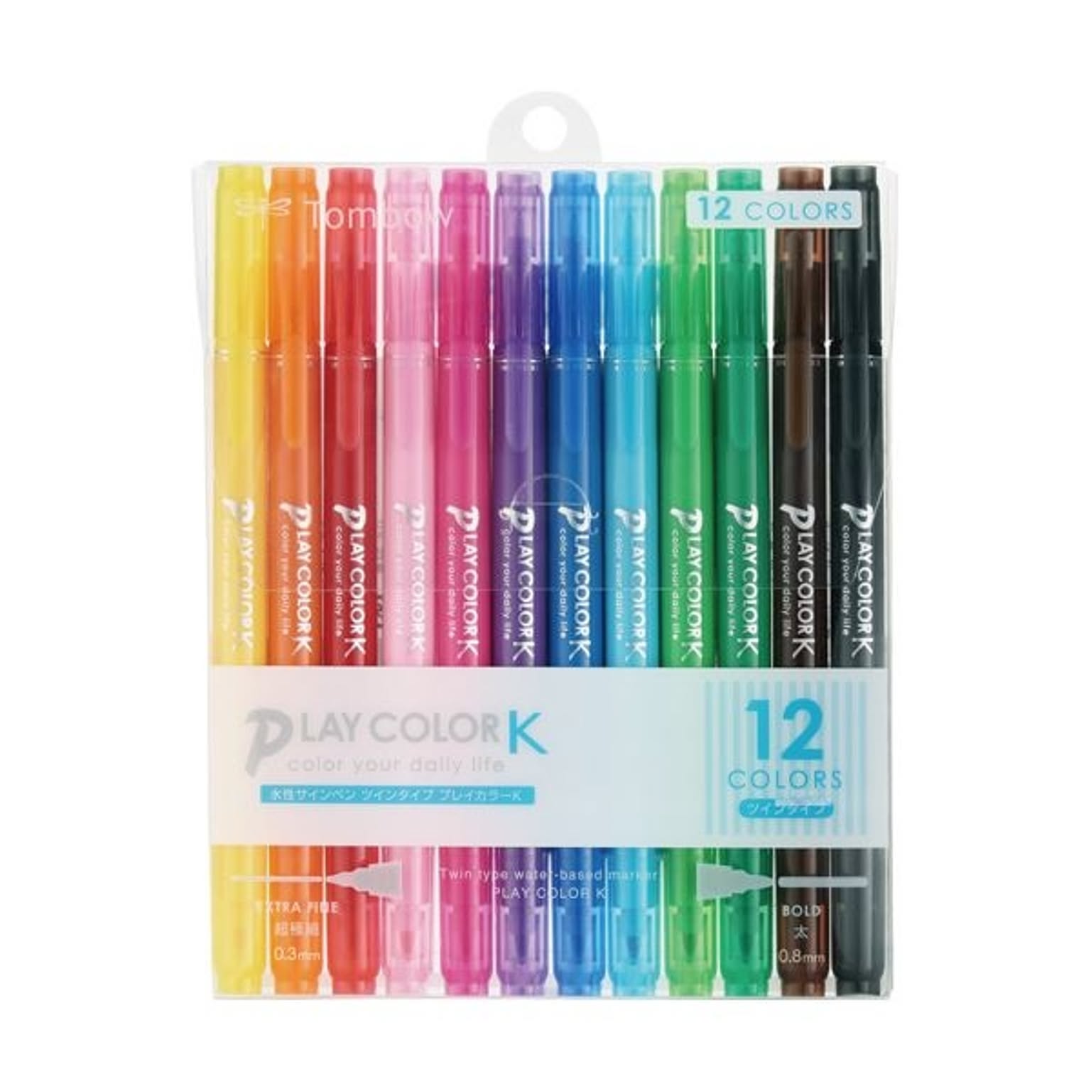 (まとめ) トンボ鉛筆 水性サインペンプレイカラーK ツインタイプ 12色(各色1本) GCF-011 1パック 【×10セット】