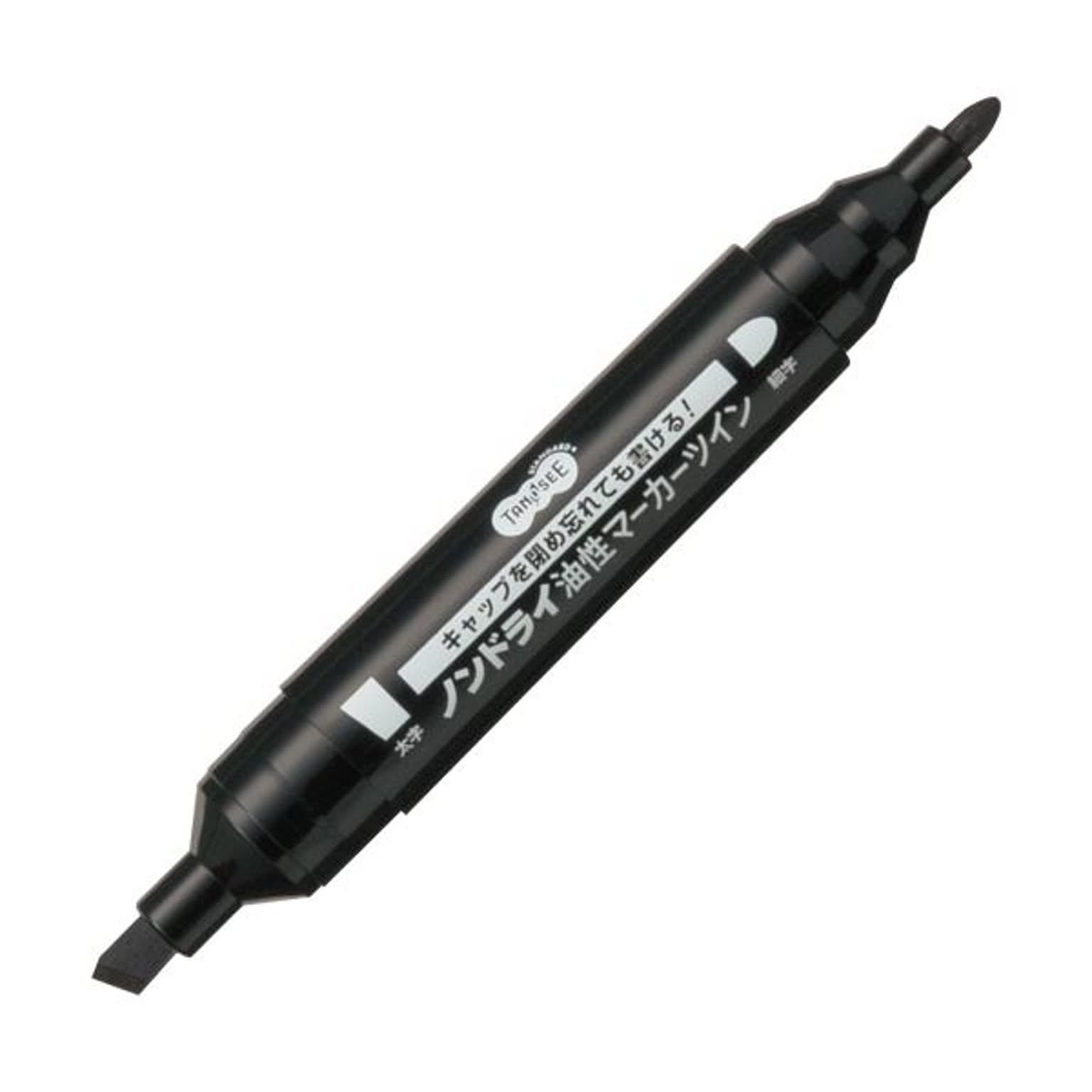 (まとめ)TANOSEEキャップ式ノンドライ油性マーカー ツイン 太字+細字 黒 1セット(50本)【×3セット】