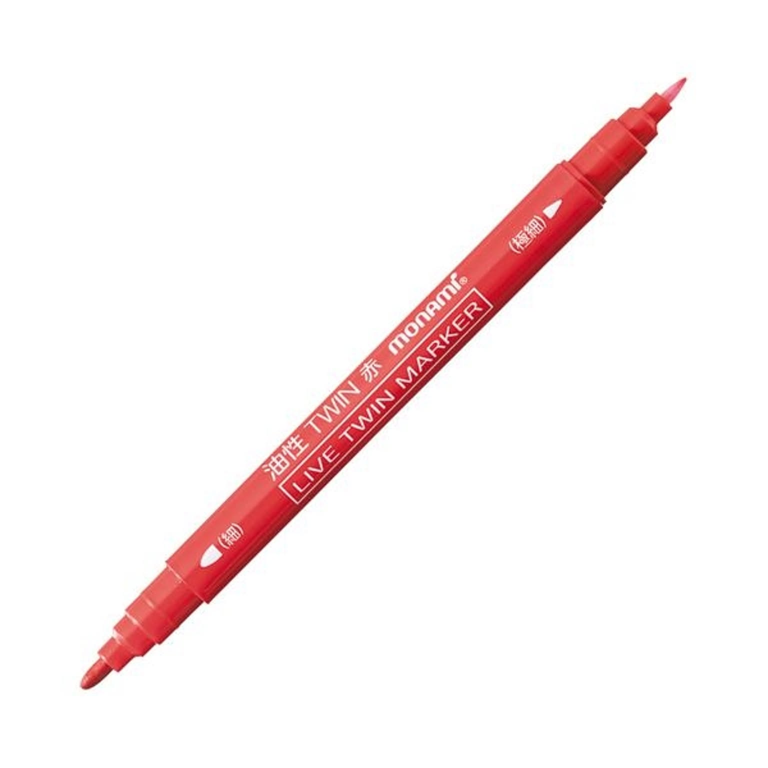 (まとめ) モナミ 油性ツインマーカー 細字+極細 赤 15002 1セット(12本) 【×10セット】