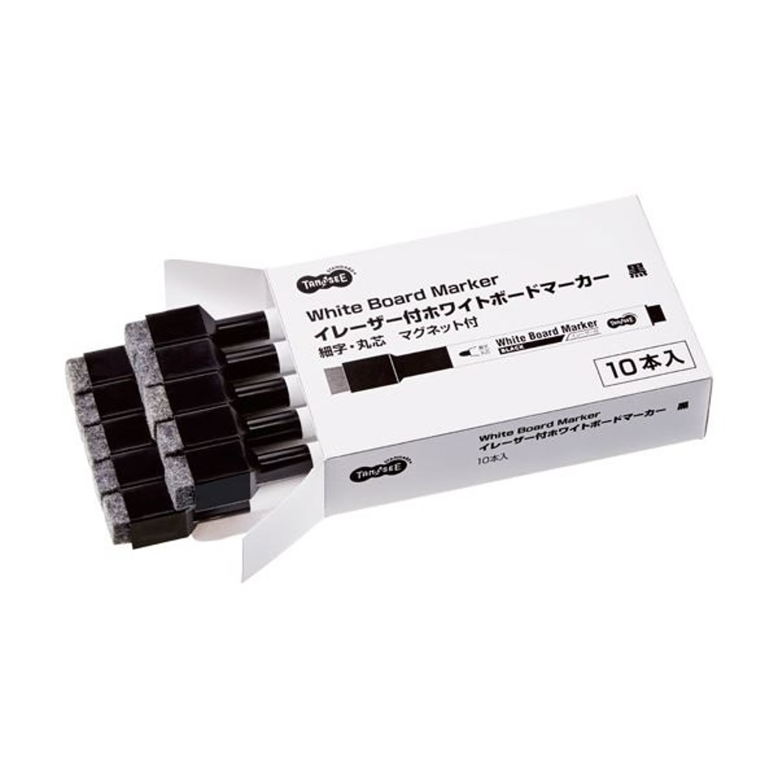 (まとめ) TANOSEEイレーザー付ホワイトボードマーカー 細字・丸芯 黒 1セット(10本) 【×10セット】